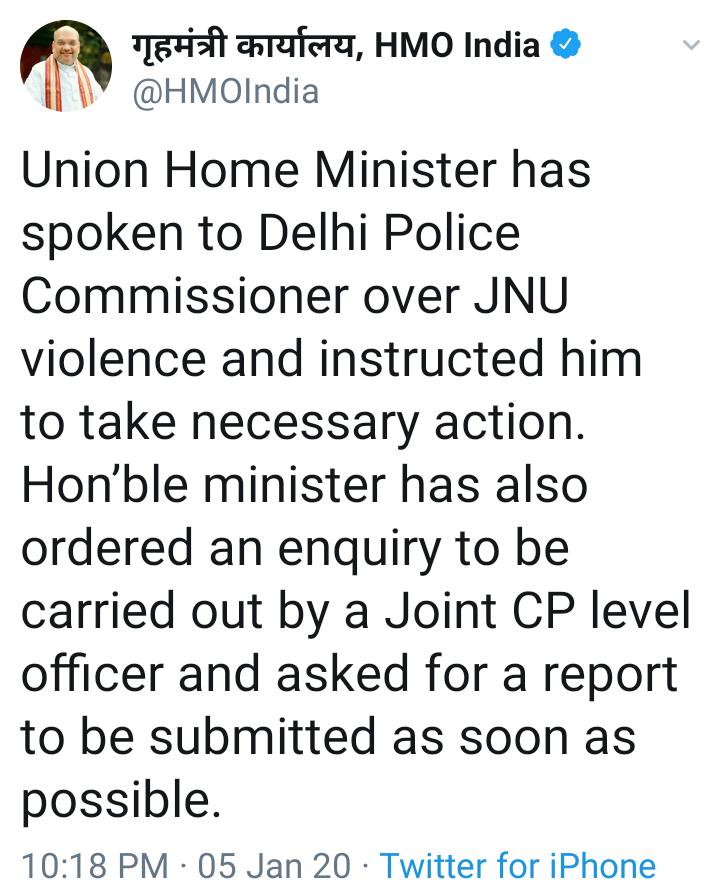 দিল্লি পুলিশ কমিশনারকে দেওয়া এক নির্দেশে অমিত শাহ বলেন, যত দ্রুত সম্ভব এই ঘটনার তদন্ত করে দোষীদের বিরুদ্ধে ব্যবস্থা নেওয়া হোক। যুগ্ম কমিশনার পর্যায়ে যেন তদন্ত হয়।