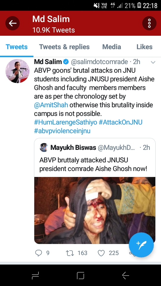 সিপিএম নেতা মহম্মদ সেলিমও এই ঘটনার নিন্দায় সরব হয়েছেন। টুইটে তিনি দাবি করেন, JNU-তে এই ঘৃণ্য আক্রমণ অমিত শাহের মদতেই হয়েছে। না হলে, ক্যাম্পাসে এতো দুষ্কৃতী ঢুকতে পারতো না।