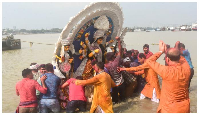 দশমীর সকাল থেকেই মন খারাপ বাংলার। চারদিনের পুজো (Pujo) শেষে আজ দেবীর কৈলাসে ফেরার পালা। সকাল থেকেই তিথি এবং পারিবারিক নিয়ম মেনে বিভিন্ন বনেদি বাড়িতে হয় দেবীবরণ- সিঁদুরখেলা। তারপর গঙ্গা-সহ বিভিন্ন নদীর ঘাটে বিসর্জন।