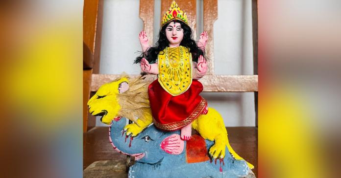 হুগলির আলোর শহর চন্দননগর (Chandannagar) জগদ্ধাত্রী পুজোর (Jagaddhatri Puja) জন্য বিখ্যাত। জেলার একাধিক জায়গায় ধুমধাম করে পালিত হচ্ছে পুজো। তবে জনসাধারণের কাছে এক অন্য আকর্ষণ হয়ে উঠেছে চন্দননগরের রথের সড়কের চন্দ্রভবনে ছোট ছেলে মেয়েদের নিজের হাতে তৈরী মা জগদ্ধাত্রী। এই পুজোর উদ্যক্তারাও বয়সে অনেকটাই ছোট। তবে ছোটদের হাত শক্ত করতে পুজোর কাজে এগিয়ে এসেছেন এলাকার বয়জ্যেষ্ঠরা। মাটি ও কাগজ দিয়ে সুন্দর জগদ্ধাত্রী প্রতিমা তৈরি করেছে তারা।