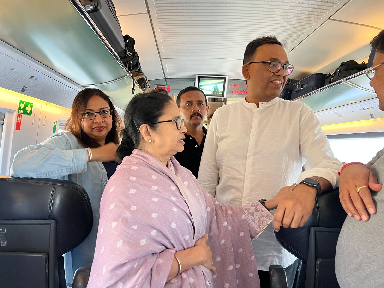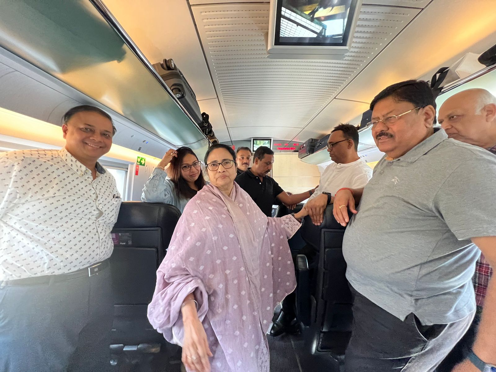 ঝাঁ চকচকে ট্রেন। আধুনিক সবরকমের ব্যবস্থা রয়েছে। ঘণ্টায় সর্বোচ্চ ৩২০ কিলোমিটার গতিতে ট্রেন চলছে। দুপাশে ছবির মতো দৃশ্যপট। কিন্ত মুখ্যমন্ত্রী সময় নষ্ট করতে নারাজ। হাতে তুলে নেন ফাইল। চোখ বুলিয়ে নিচ্ছিলেন আগামী কর্মসূচির দিকে। কখনও ডেকে নিচ্ছিলেন মুখ্যসচিব বা শিল্পসচিবকে, আবার কখনও আধিকারিকদের। মাঝে উঠে গিয়ে সফরসঙ্গী শিল্পপতিদের সঙ্গে কথা বলে আসেন মমতা বন্দ্যোপাধ্যায়।