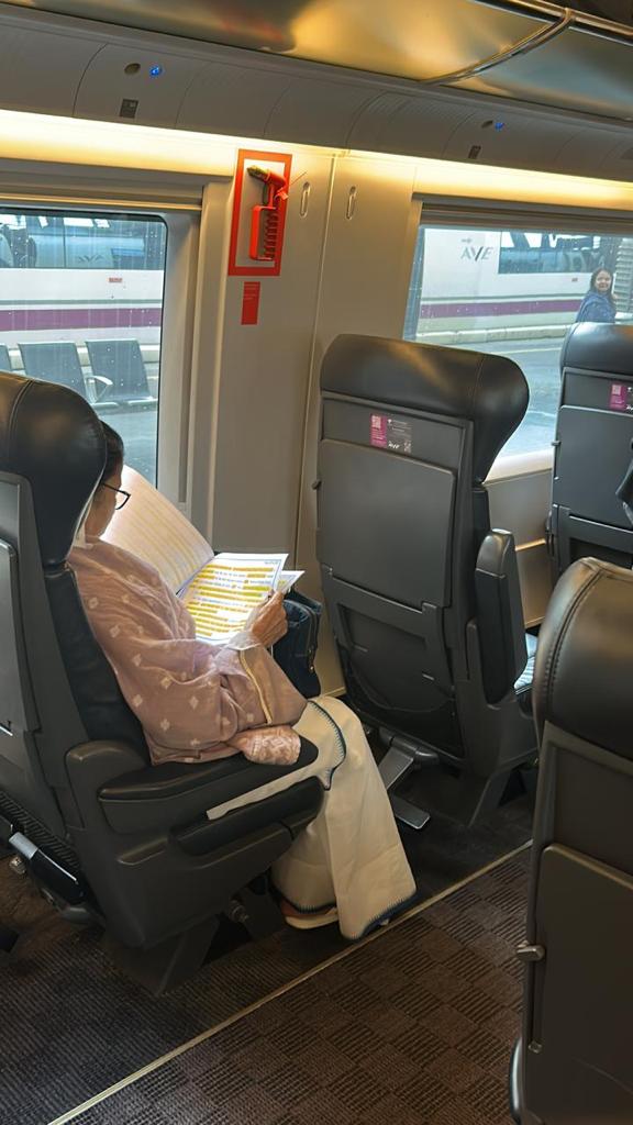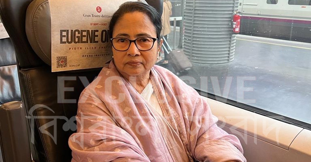 বার্সেলোনার পথে ট্রেন থেকে:মাদ্রিদের সফল শিল্প সম্মেলনের পর এবার গন্তব্য বার্সেলোনা। ট্রেনে চেপে মাদ্রিদ্র টু বার্সেলোনা। স্টেশনে আসতেই ভারতীয় রাষ্ট্রদূত দীনেশ পট্টনায়েক মুখ্যমন্ত্রী মমতা বন্দ্যোপাধ্যায়কে (Mamata Banerjee) অনুরোধ করেন ফার্স্ট ক্লাসে ওঠার জন্য। কিন্তু রাষ্ট্রদূতের অনুরোধ সত্ত্বেও মুখ্যমন্ত্রী ট্রেনের ফার্স্ট ক্লাসে চাপলেন না। সাধারণ শ্রেণিতেই চললেন মাদ্রিদ থেকে বার্সেলোনা। এখানেই তিনি অন্যদের চেয়ে আলাদা। মানসিকতায় ব্যতিক্রমী।
