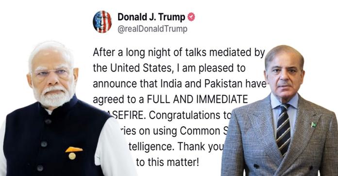 সকালে ভারত ও পাকিস্তান উভয় দেশের রাষ্ট্রনেতাদের সঙ্গে কথা বলেন মার্কিন স্টেট ডিপার্টমেন্টের প্রধান মার্কো রুবিও (Marco Rubio)। যদিও দুই দেশের তরফেই সেই কথাবার্তায় কোনও সমাধানের পথ খোলেনি বলেই জানানো হয়। এমনকি এরপরেও ভারতের প্রধানমন্ত্রী নরেন্দ্র মোদি (Narendra Modi) সেনার তিন প্রধান ও এনএসএ অজিত ডোভালের সঙ্গে বৈঠক করেন। এরপরই আচমকা ডোনাল্ড ট্রাম্পের (Donald Trump) তরফে জানানো হয় ভারত ও পাকিস্তান উভয়েই পরস্পরের প্রতি অগ্নিবর্ষণ থামাতে (de-escalation) সম্মত হয়েছে। নিজের সোশ্যাল মিডিয়ায় সেকথা জানান তিনি। সেই সঙ্গে ধন্যবাদ জানান দুই দেশের রাষ্ট্রপ্রধানদের।