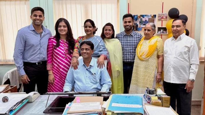 চাকরি জীবনে বাবার শেষ দিন। সেই মুহূর্রতে আরও স্পেশ্যাল করে রাখতে বাবার অফিসে হাজির সূর্যকুমার যাদব(Suryakumar Yadav)। ভাবা অ্যাটমিক রিচার্চ সেন্টারে চাকরি করতেন সূর্যকুমার যাদবের(Suryakumar Yadav) বাবা। সেই চাকরি জীবনের শেষ দিনই বাবার অফিসে উপস্থিত হয়েছিলেন সূর্য। ফেয়ারওয়েল পার্টিটাকে আরও বিশেষ করে তোলারই ভাবনিা ছিল তাঁর মনের মধ্যে। জীবনের এমন একটা দিনে ছেলেকে নিজের পাশে পেয়ে আপ্লুত সূর্যকুমারের বাবা অশোক কুমার(Ashok Kumar)।