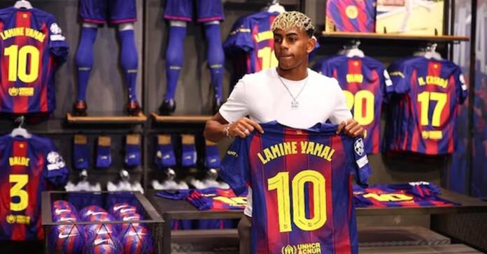 কোচ হুয়ান লাপোর্তাই ইয়ামালের হাতে তুলে দিয়েছে সেই দশ নম্বর জার্সি।