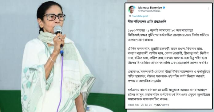 ধর্মতলায় বাংলার সকল মা-মাটি-মানুষকে আমার সাদর আমন্ত্রণ রইল। আসুন, মহান শহিদ তর্পণে অংশ নিন এবং একুশে জুলাইয়ের সমাবেশকে সাফল্যমণ্ডিত করুন।