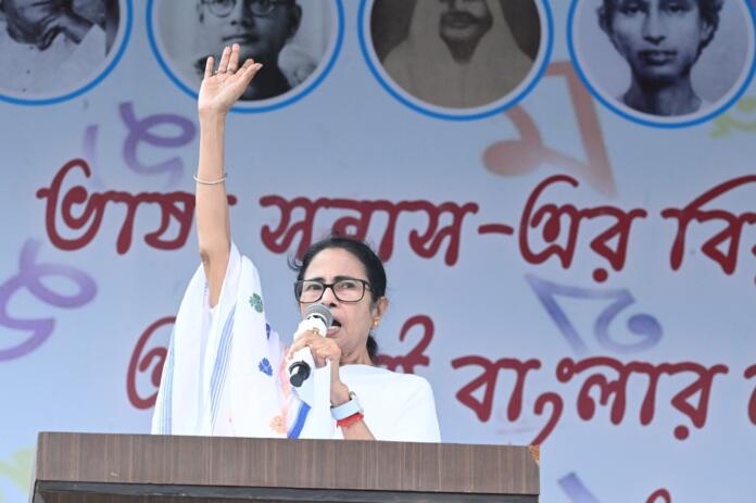 বিশ্বকবির স্বপ্নের বোলপুর-শান্তিনিকেতন থেকে ‘বিভেদ নয়, ঐক্যে’র বার্তা দিয়ে ভাষা আন্দোলনে যোগদানকারী সবাইকে প্রণাম ও ধন্যবাদ জানান তৃণমূলনেত্রী মুখ্যমন্ত্রী মমতা বন্দ্যোপাধ্যায় (Mamata Banerjee)। কেন্দ্রকে স্মরণ করিয়ে দেন, ইতিহাসকে ভুলে যাবেন না, বাংলার গুরুত্ব ভুলে যাবেন না। আমরা নেপালি, হিন্দি-সহ সকল ভাষাকে স্বীকৃতি দিয়েছি। আমরা যদি বড় মন নিয়ে স্বীকৃতি দিতে পারি। আপনারা কেন বাংলাকে তাচ্ছিল্য করছেন? মনে রাখবেন সারা পৃথিবীতে বাংলায় কথা বলে পঞ্চম। এশিয়াতে বাংলাভাষা দু’নম্বরে।