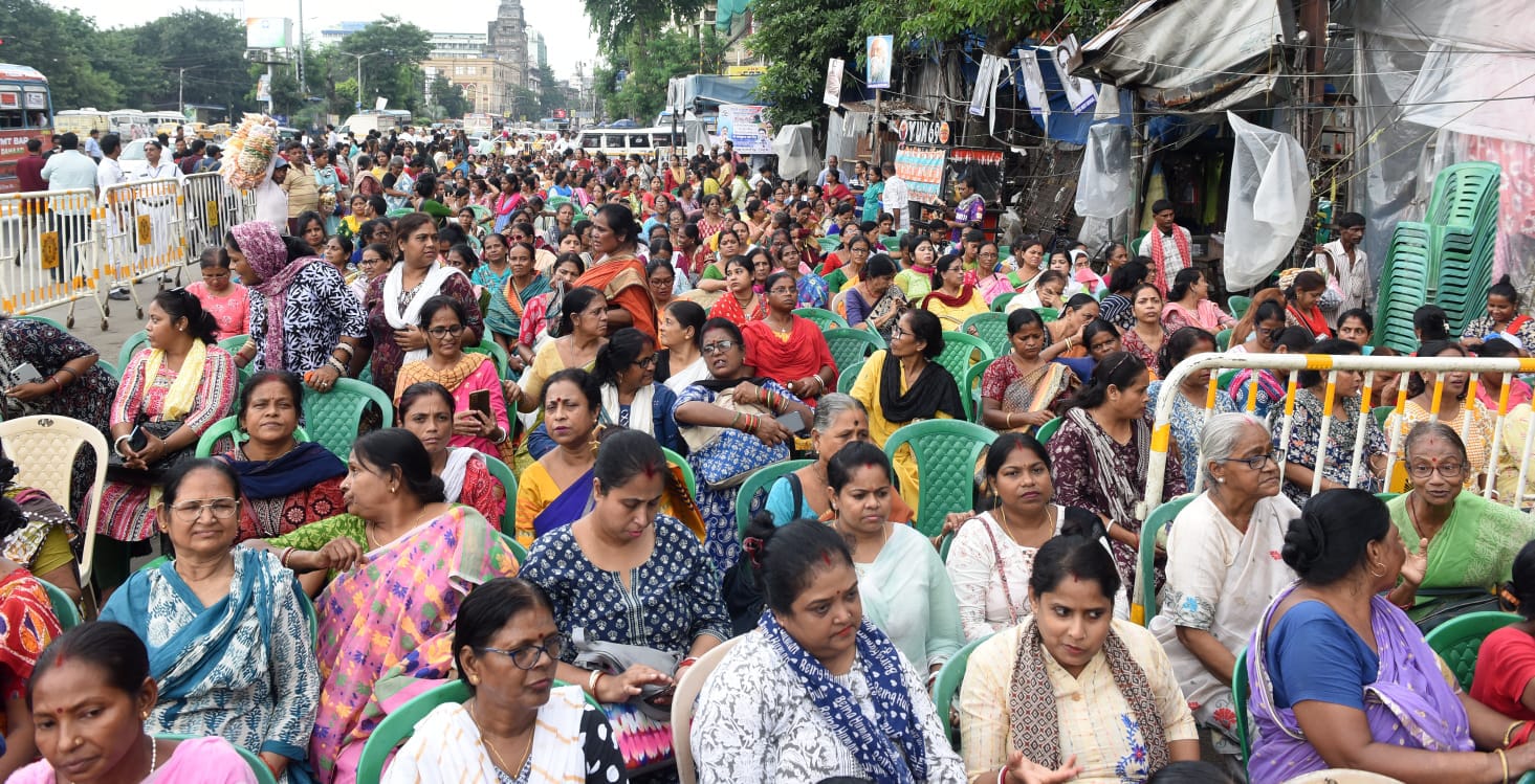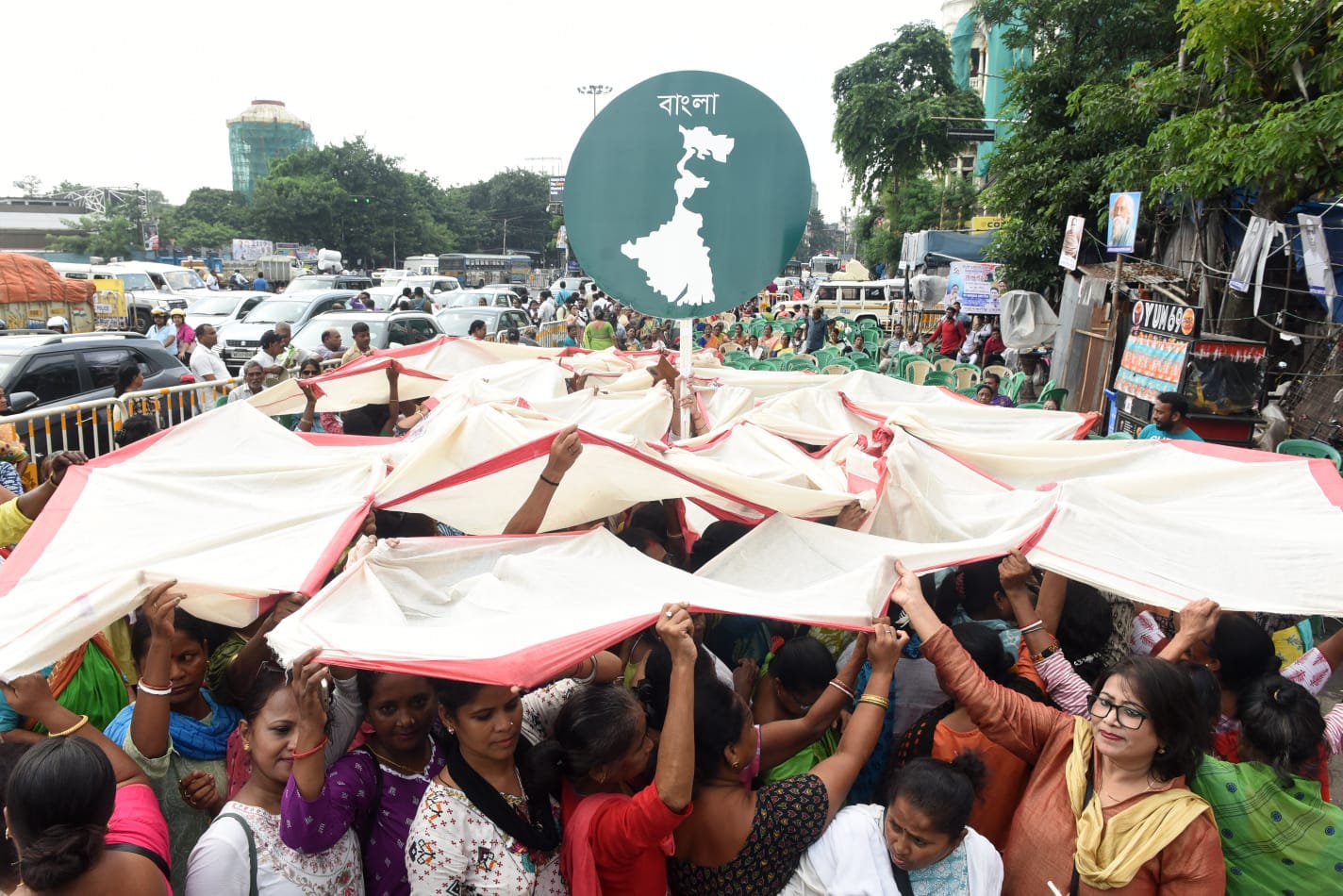 ভাষা সন্ত্রাস ও বিজেপির (BJP) ষড়যন্ত্রের বিরুদ্ধে সরব তৃণমূল মহিলা কংগ্রেস। নিউবারাকপুর থেকে আসা মহিলা তৃণমূল কর্মীদের তাসা, কাঁসর-ঘণ্টার বাজনায় মুখরিত হল প্রতিবাদ মঞ্চ। বক্তব্যের মাধ্যমে বাংলাবিদ্বেষী বিজেপির স্বরূপ তুলে ধরলেন সভানেত্রী তথা রাজ্যের মন্ত্রী চন্দ্রিমা ভট্টাচার্য, ডাঃ শশী পাঁজা, সাংসদ মালা রায়, অর্পিতা ঘোষেরা। এছাড়াও ধরনায় ছিলেন প্রিয়দর্শিনী হাকিম, চৈতালি চট্টোপাধ্যায়, মৌসুমী দাস-সহ শহর কলকাতা ও আশপাশের জেলাগুলির তৃণমূল মহিলা কর্মী-সমর্থকেরা। সভানেত্রী চন্দ্রিমা বলেন, শুধু বাংলা ভাষা ও বাংলাভাষী শ্রমিকদের উপর আক্রমণই নয়। ভোট নিয়ে নির্বাচন কমিশনকে কাজে লাগিয়ে বিজেপি সরকারের পরিকল্পিত ষড়যন্ত্র চলছে। বাংলার মানুষ এই অপমান মেনে নেবে না।