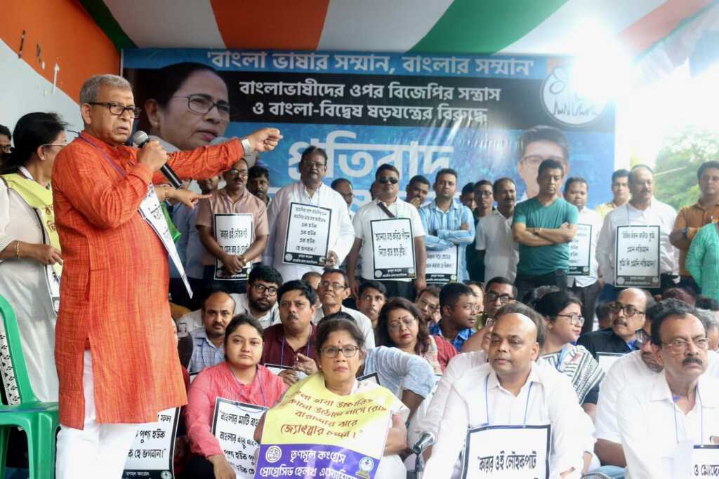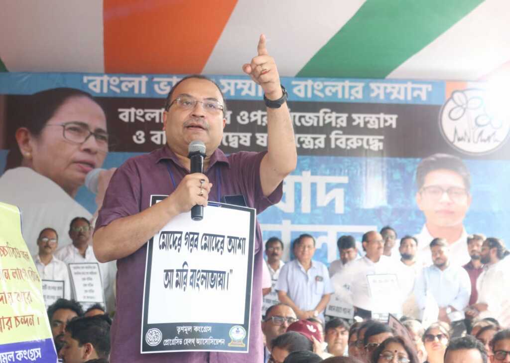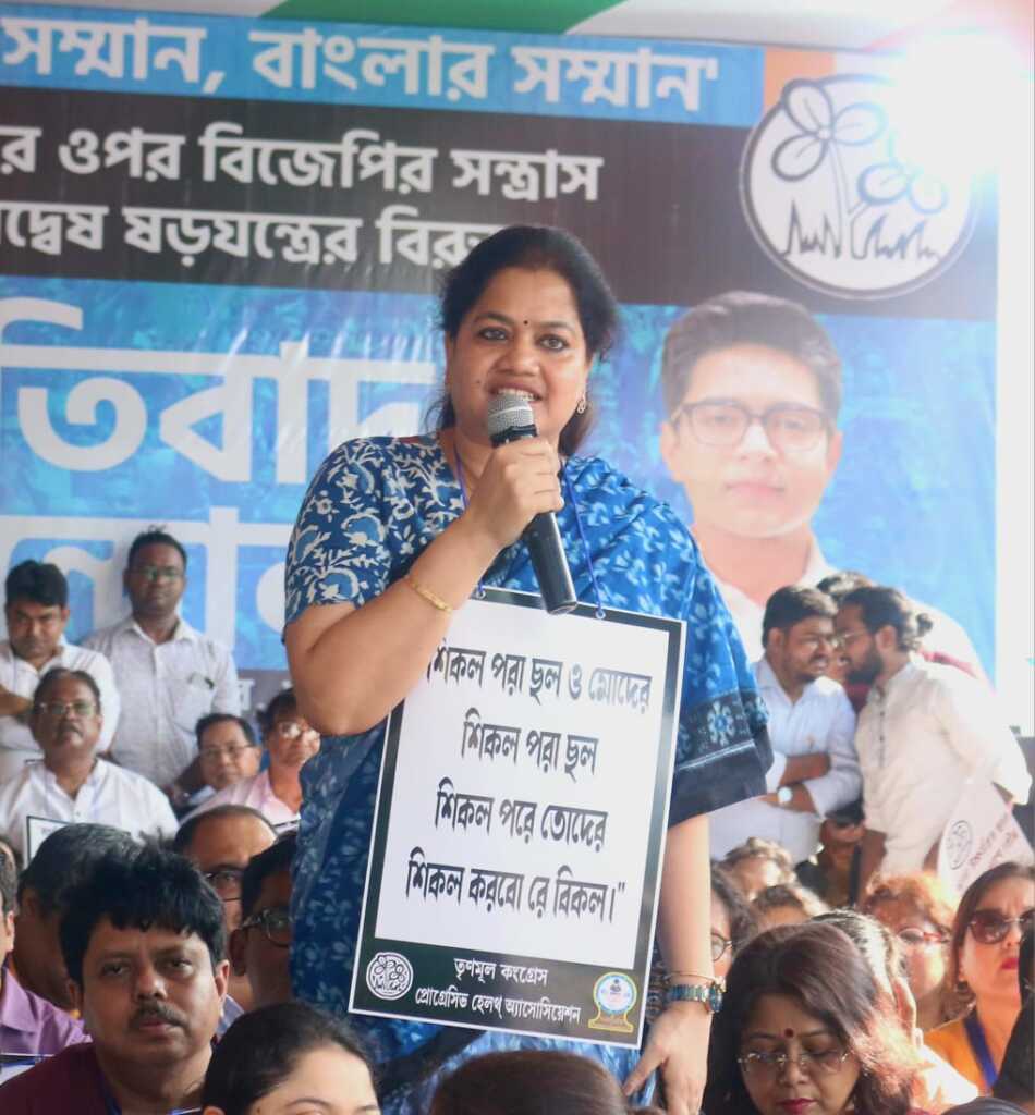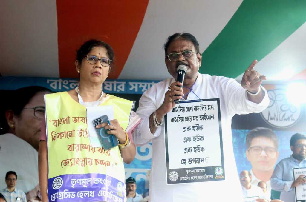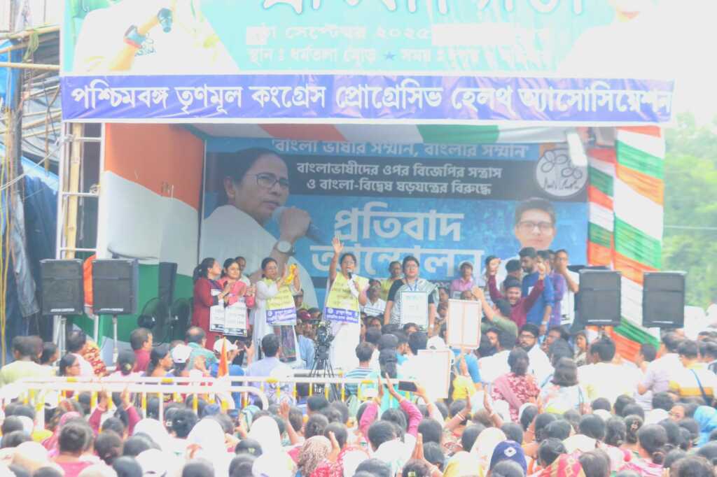 রবিবার ধর্মতলায় যে জমায়েত দেখা গিয়েছে স্বাস্থ্যকর্মী সমাজের, তাকে কুর্নিশ জানিয়ে শশী পাঁজা বলেন, দিদির নির্দেশ ও দিদির ডাকে এই কর্মসূচিতে অভূতপূর্ব উপস্থিতি হয়েছে সকল স্বাস্থ্যকর্মী সকলের। চিকিৎসক থেকে নার্স, সিএইচও, ফার্মাসিস্ট, আয়ুর্বেদ, হোমিওপ্যাথ চিকিৎসকদের দারুন উপস্থিতি হয়েছে। প্রত্যেকের একটি কথা – মমতা বন্দ্যোপাধ্যায়ের হাত শক্ত করার জন্য, স্বাস্থ্যের উন্নয়নের জন্য তাঁরা কাজ করছেন। বিভিন্ন জেলা থেকে, প্রান্তিক এলাকা থেকেও তাঁরা এসেছিলেন আজ। নিশ্চিতভাবে প্রতিবাদ জোরালো হয়েছে যে বাংলাভাষার উপর বা আমরা বাংলা বললেই তাদের হেনস্থা, আক্রমণ, অপমান করা যাবে না। যাঁরা স্বাস্থ্যকর্মী সমাজ তাঁরাও এই লড়াইতে সামিল। তাঁরাও এই অপমানের বিরুদ্ধে যাঁরা যে যেখানে কাজ করছেন, সেখানেই প্রতিবাদ জানাবেন। সকলেই স্বাস্থ্য পরিষেবা বজায় রেখে অনেক মানুষ এসেছেন।