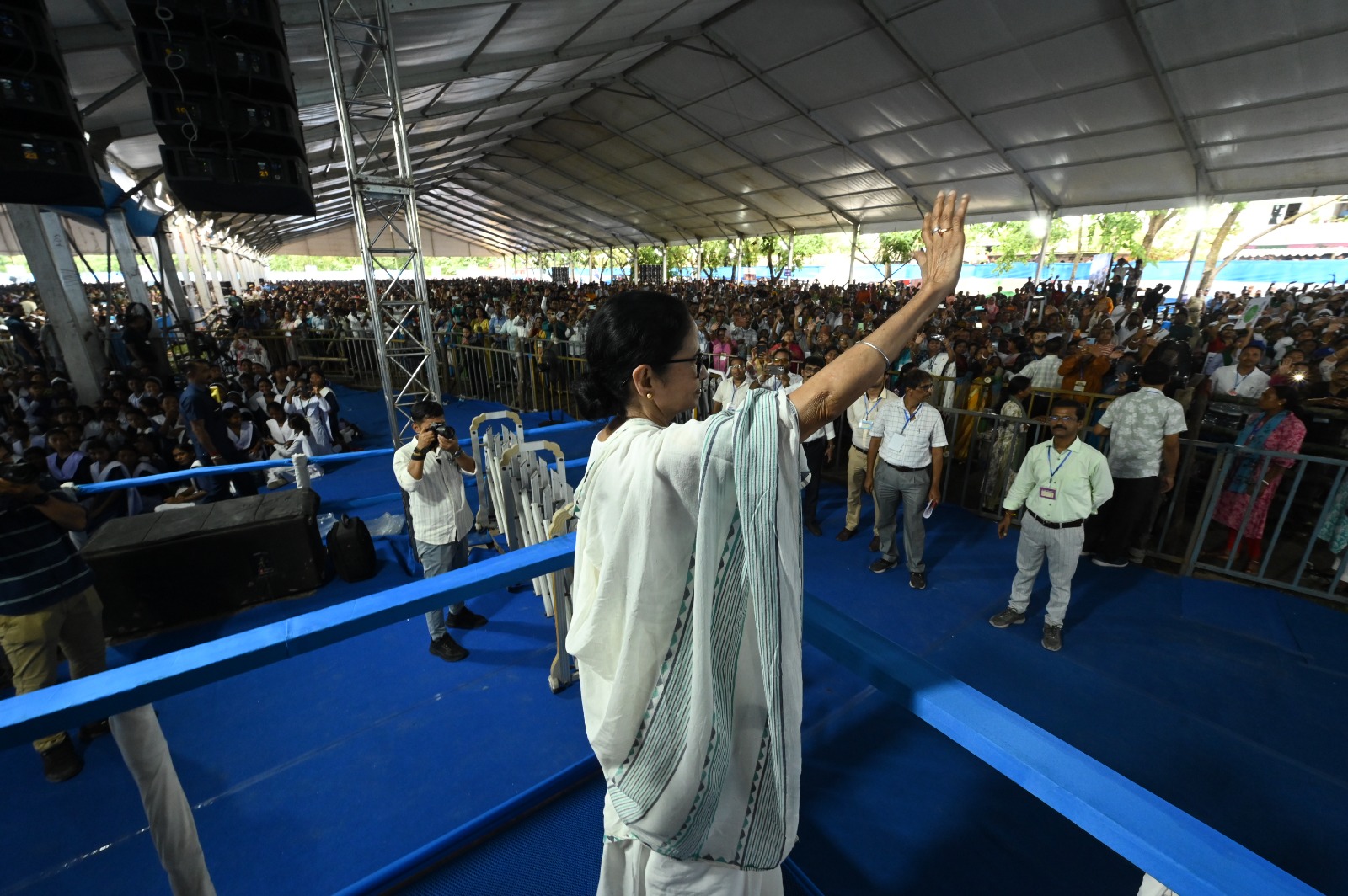 দেশের নেতা কেমন হয়, বলতে গিয়ে গান্ধীজি, নেতাজি, রবি ঠাকুর, ক্ষুদিরামের প্রসঙ্গ টেনে মমতা বলেন, “দেশের নেতা সেই হবে যে দেশ বোঝে। যে জাতপাতে ভাগ করে সে দেশের নেতা না। আমরা হার মানব না। মাথা নত করব না।”