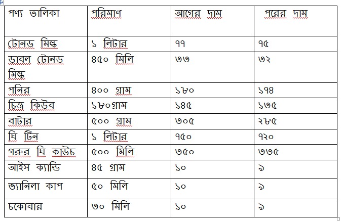 যেমন, ৫০০ গ্রাম মাখনের দাম ৩০৫ টাকা থেকে নামিয়ে আনা হয়েছে ২৮৫ টাকা। একটি বাটারস্কচ কোন আইসক্রিম ৩৫ টাকার বদলে মিলবে ৩০ টাকায়। ইউএইচটি দুধের দামও কমেছে। ১ লিটার টেট্রা প্যাক টোনড মিল্কের দাম ৭৭ টাকা থেকে নামিয়ে ৭৫ টাকা করা হয়েছে। তবে ফুলক্রিম বা টোনড পাউচ দুধের দামে কোনও পরিবর্তন হবে না, কারণ এর উপর জিএসটি আগে থেকেই প্রযোজ্য ছিল না। আমুলও আগেই জানিয়েছে, পাউচ দুধের দাম অপরিবর্তিত থাকবে।