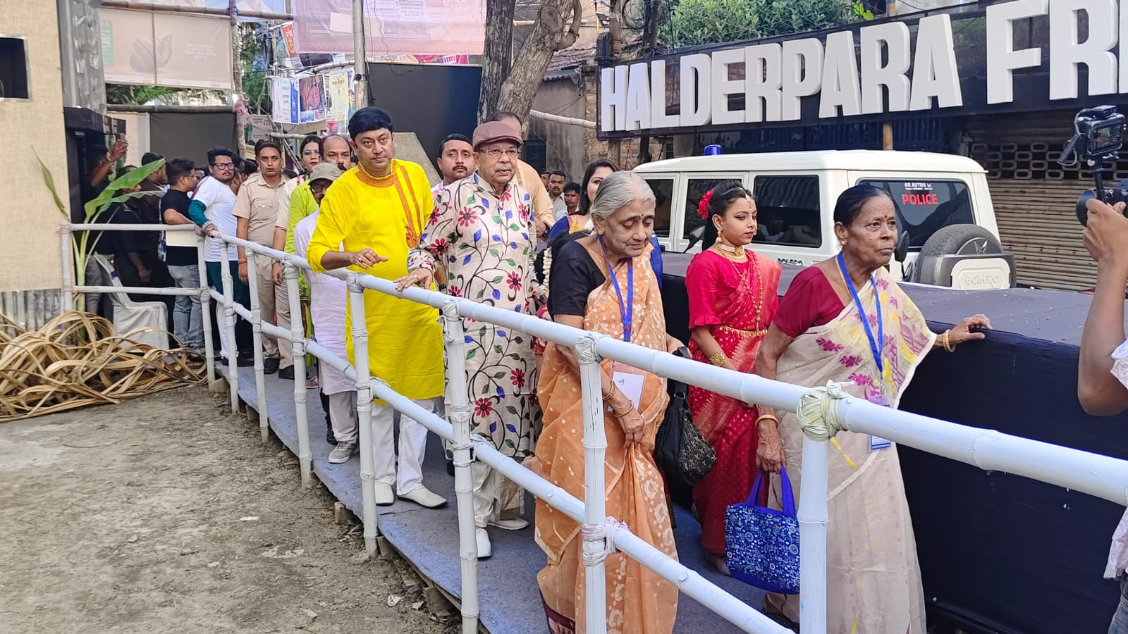 মহাষষ্ঠীর দিন মধ্য হাওড়া যুব তৃণমূল কংগ্রেসের উদ্যোগে প্রায় ৭৫ জন বয়স্ক-বয়স্কা মন্ডপে ঘুরে ঘুরে প্রতিমা দর্শন করলেন। টোটোয় করে তাঁদের মধ্য হাওড়ার বিভিন্ন পুজোমন্ডপে ঘুরিয়ে ঠাকুর দেখানোর ব্যবস্থা করেন যুব তৃণমূলের কর্মীরা। মধ্য হাওড়ার হালদারপাড়া ফ্রেন্ডস অ্যাসোসিয়েশন ক্লাবের পুজো থেকে এদিন তাঁদের প্রতিমা দর্শন হয়। যাত্রা শুরুর সময় উপস্থিত ছিলেন মন্ত্রী অরূপ রায়, হাওড়া সদর যুব তৃণমূলের সভাপতি কৈলাশ মিশ্র, মধ্য হাওড়া কেন্দ্র যুব তৃণমূলের সভাপতি অভিষেক চট্টোপাধ্যায় সহ আরও অনেকে।