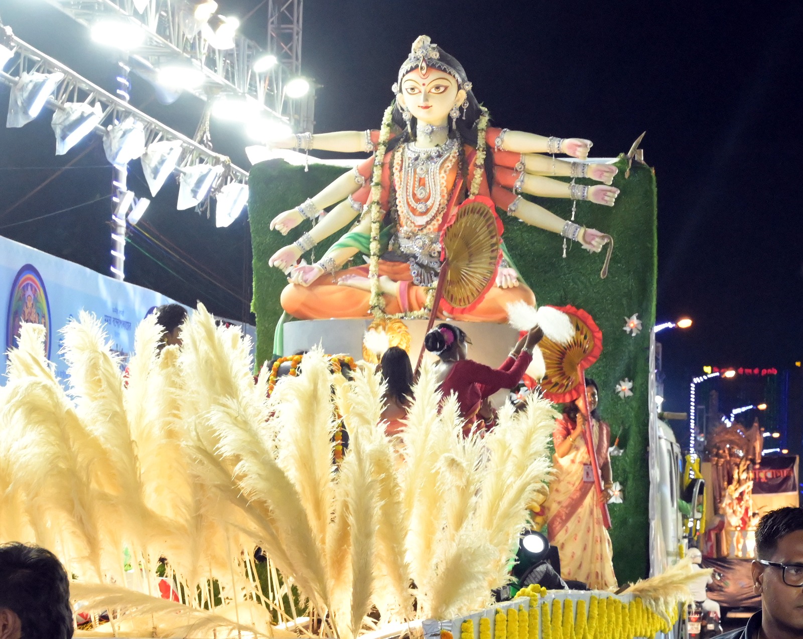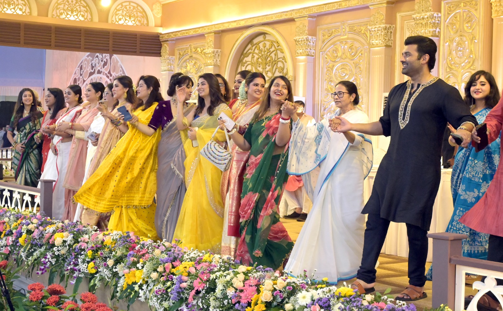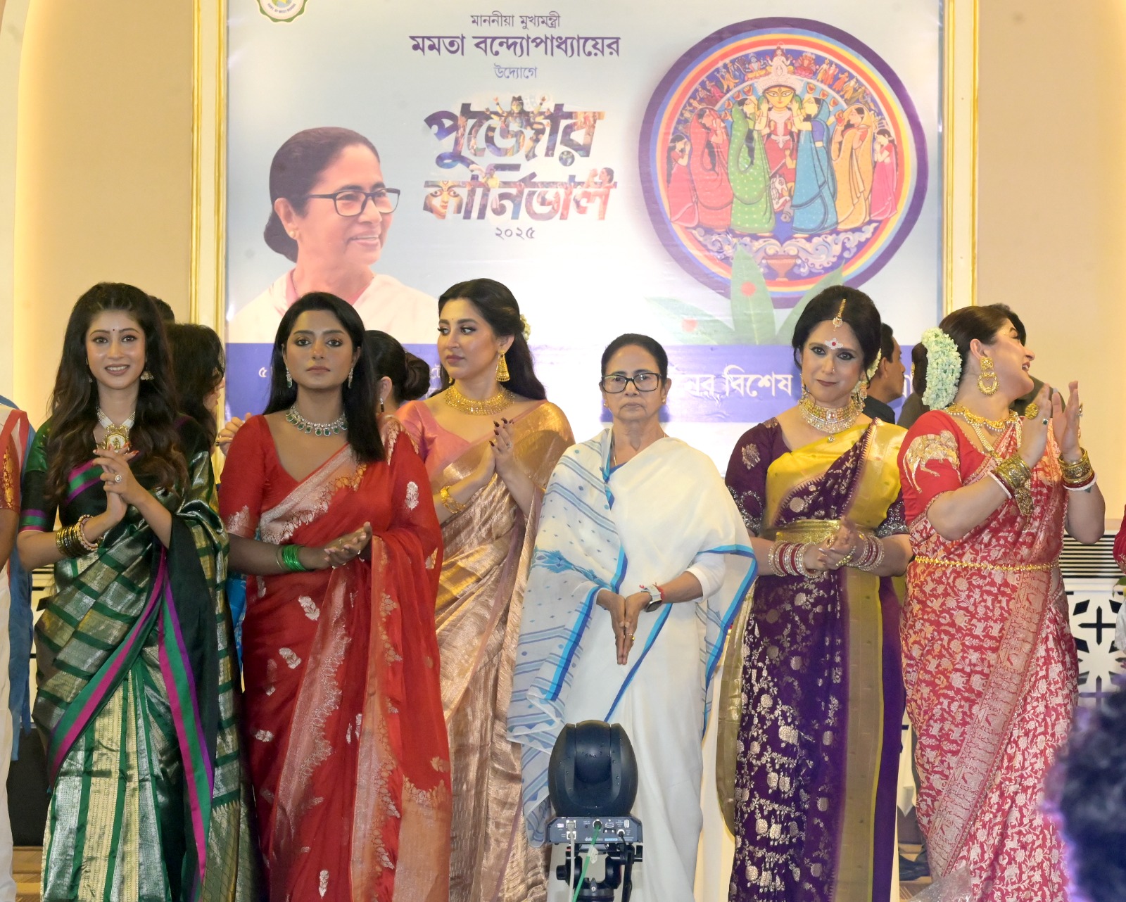 বর্ণাঢ্য শোভাযাত্রা মতি দিয়ে একে একে ট্যাবলো চলেছে রেড রোড দিয়ে। মঞ্চে মুখ্যমন্ত্রীর সঙ্গে উপস্থিত জুন মালিয়া, লাভলি মৈত্র, সায়ন্তিকা বন্দ্যোপাধ্যায়, শ্রীতমা ভট্টাচার্য, সৌমীতৃষা কুণ্ডু, ভরত কল, রাজা গোস্বামী, রিমঝিম মিত্র, পায়েল দেব, দিব্যজ্যোতি দত্ত-সহ অনেকে। সন্ধে গড়াতেই উপস্থিত হন ঐন্দ্রিলা সেন, সোহম চক্রবর্তী, পরমব্রত চট্টোপাধ্যায়, যিশু সেনগুপ্ত, রিয়া সেন, রাইমা সেন, শ্রাবন্তী চট্টোপাধ্যায়।লাল বেনারসীতে একেবারে দেবী চৌধুরানীর সাজে উপস্থিত হন শ্রাবন্তী। কিছু ক্ষণ পরে দেখা যায় ‘ভবানী পাঠক’ প্রসেনজিৎ চট্টোপাধ্যায়কেও।