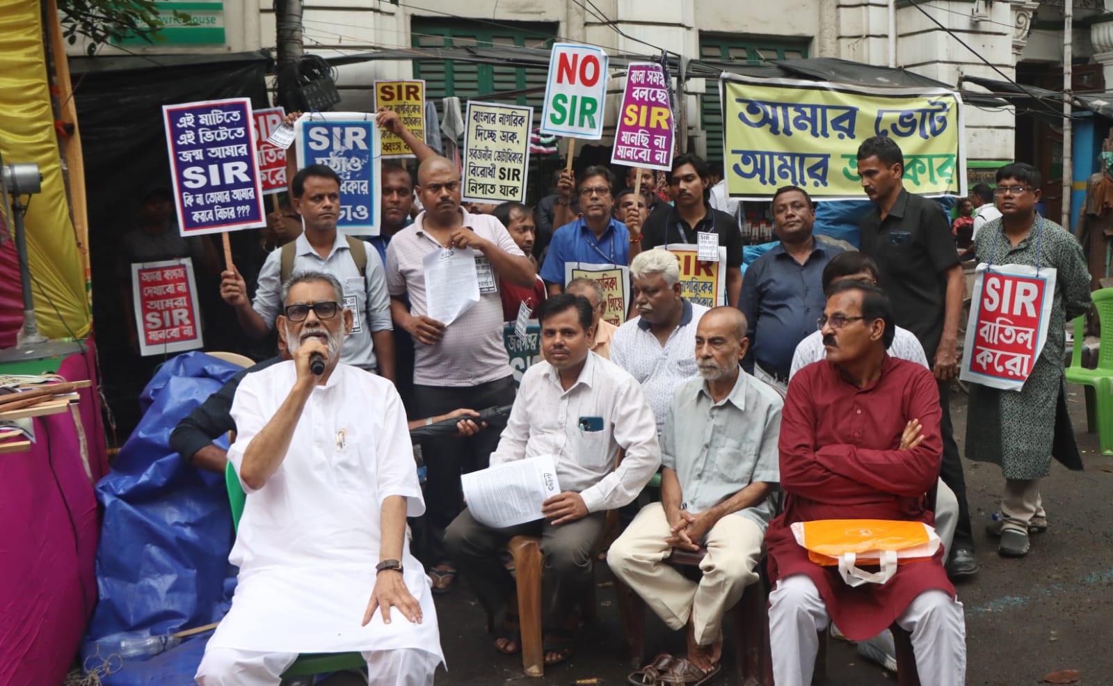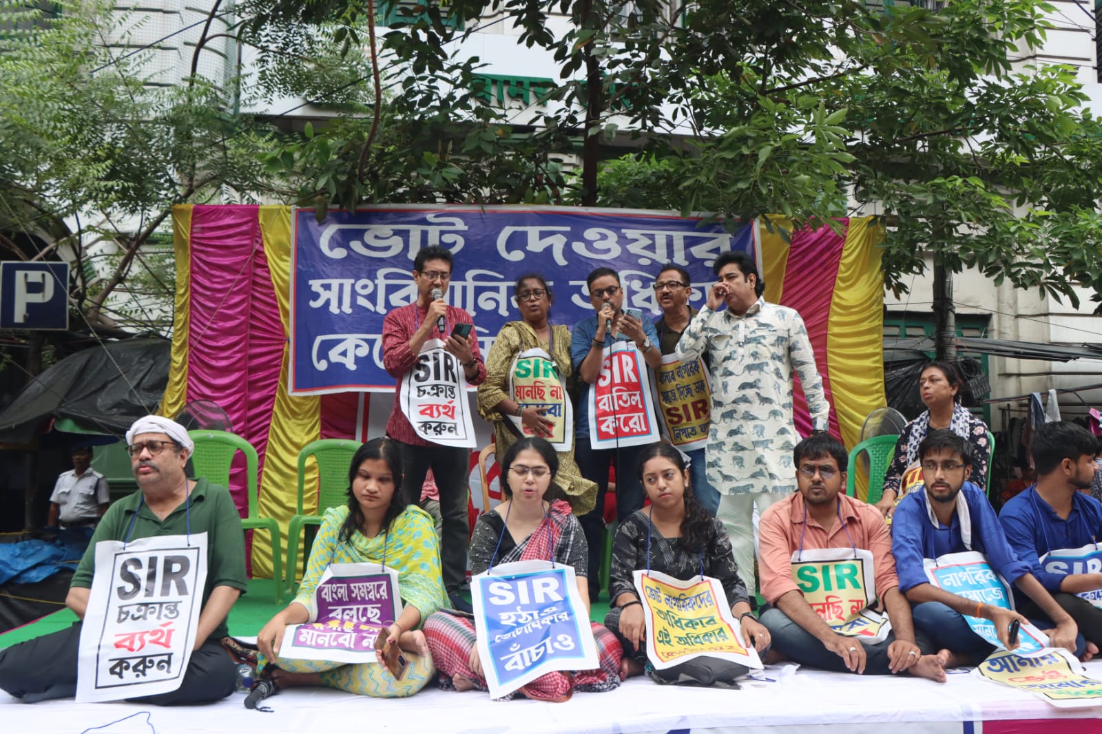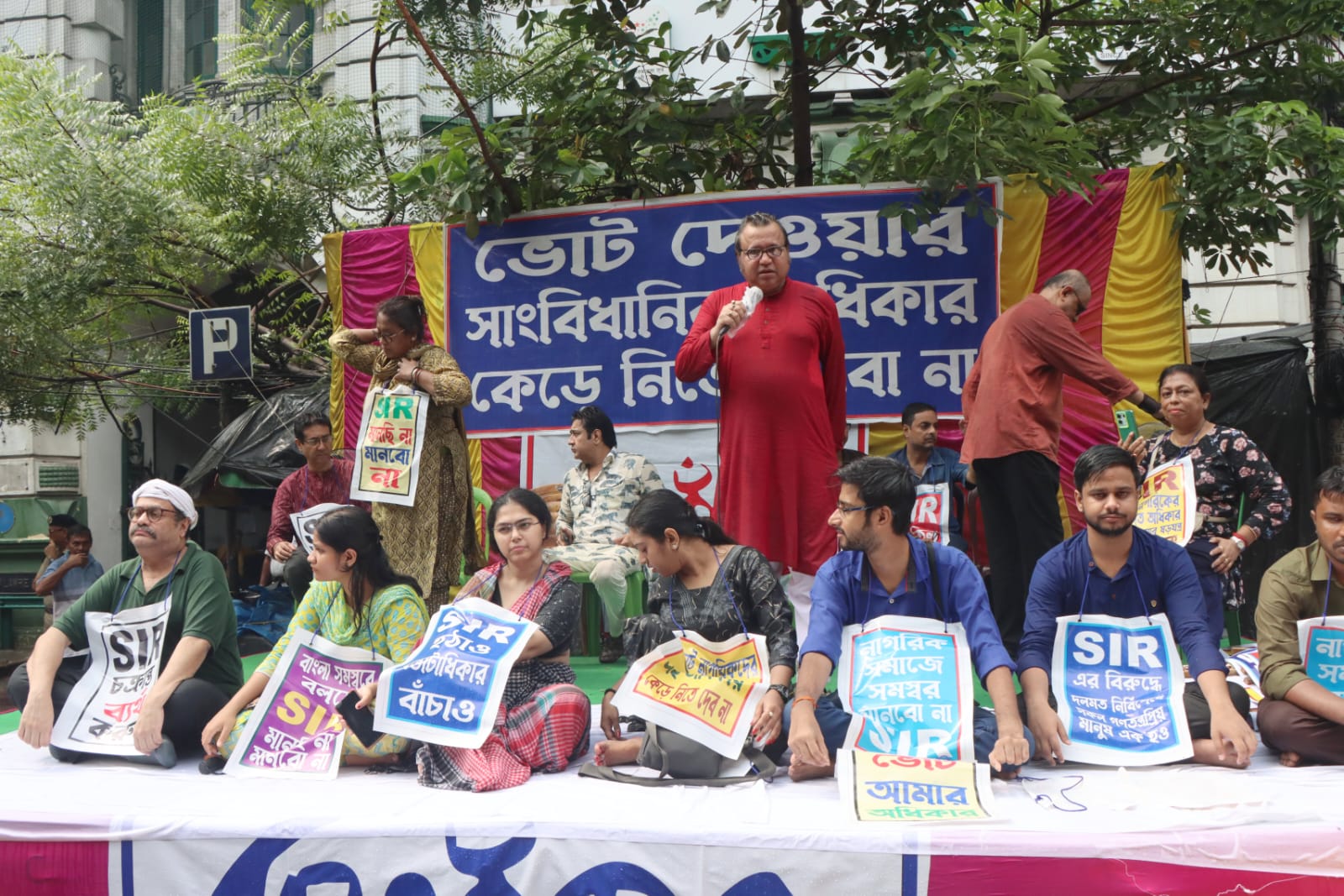 বাংলার কোনও বৈধ ভোটারকে জোর করে অবৈধ করা যাবে না। বুধবার, কলকাতার চিফ ইলেকশন কমিশনারের অফিসের সামনে অবস্থান মঞ্চ থেকে দাবি জানাল দেশ বাঁচাও গণমঞ্চ (Desh Bachao Gana Manch। তৃণমূল নেতা তথা রাজ্যের প্রাক্তন মন্ত্রী পুর্ণেন্দু বসু (Purnendu Bose) SIR নিয়ে নাগরিকদের উদ্বেগের বিষয়টি ব্যাখ্যা করেন। যদি শুধুমাত্র ভোটে কারচুপি করে ভোট জেতানোর জন্য বিজেপির প্ররোচনায় নির্বাচন কমিশন এসআইআর-এর মাধ্যমে রাজ্যের মানুষের নাগরিকত্ব কেড়ে নিতে চায়, তাহলে বাংলার মানুষ প্রতিবাদে বারবার রাস্তায় নামবে।