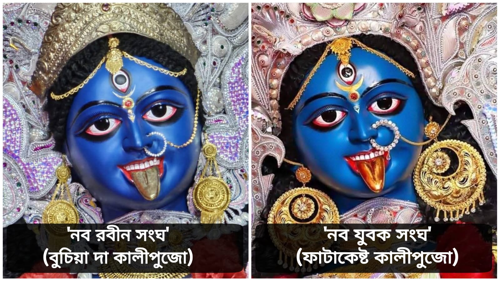 ইতিমধ্যেই শোরগোল পড়ে গিয়েছে যে নব যুবক সংঘ অর্থাৎ ফাটাকেষ্ট কালীপুজোয় প্রতিমার মুখের আদলে বদল ঘটেছে। দীর্ঘ ৬৮ বছরের ঐতিহ্যবাহী প্রতিমার সেই মুখের আদল পরিবর্তনের কারণ হিসেবে তাঁদের পটুয়া বদল। এরই মধ্যে সোমবার প্রকাশ্যে এলো ‘নব রবীন সংঘ’ কালীপুজোর কালীমূর্তি। এদিন মণ্ডপে প্রতিমা আসতেই নেটপাড়ায় গুঞ্জন, ফাটাকেষ্টর কালী প্রতিমার হুবহু রূপ এবারে বুচিয়াদার কালীপুজোর প্রতিমায়। আবেগপ্রবণ নেটিজেনদের একাংশের কথায় ফাটাকেষ্ট কালীপুজোর ঐতিহ্যবাহী প্রতিমার রূপ ফিরে এসেছে ‘নব রবীন সংঘ’-এ। হুবহু সেই সুবিশাল দেবীপ্রতিমা, গাঢ় নীলবর্ণা, পটল চেরা চোখ, আর সেই মায়াবী মুখ।