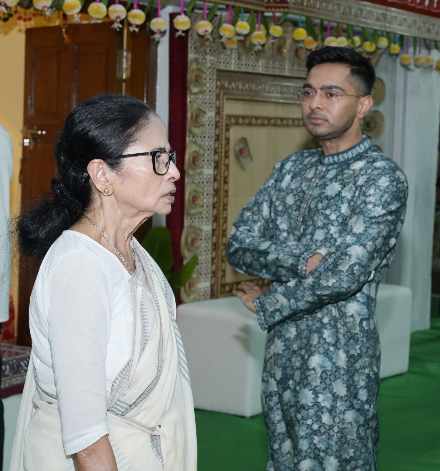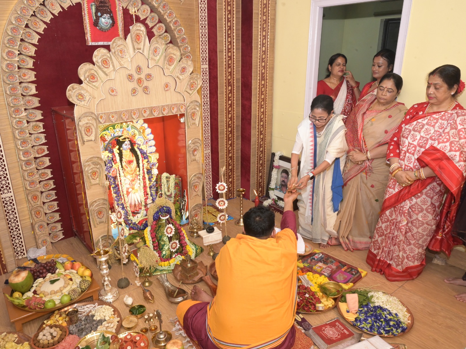 দীপ জ্বালিয়ে-ভোগ রেঁধে বাড়ির কালীপুজোর সূচনা মুখ্যমন্ত্রীর, সপরিবারে হাজির অভিষেক