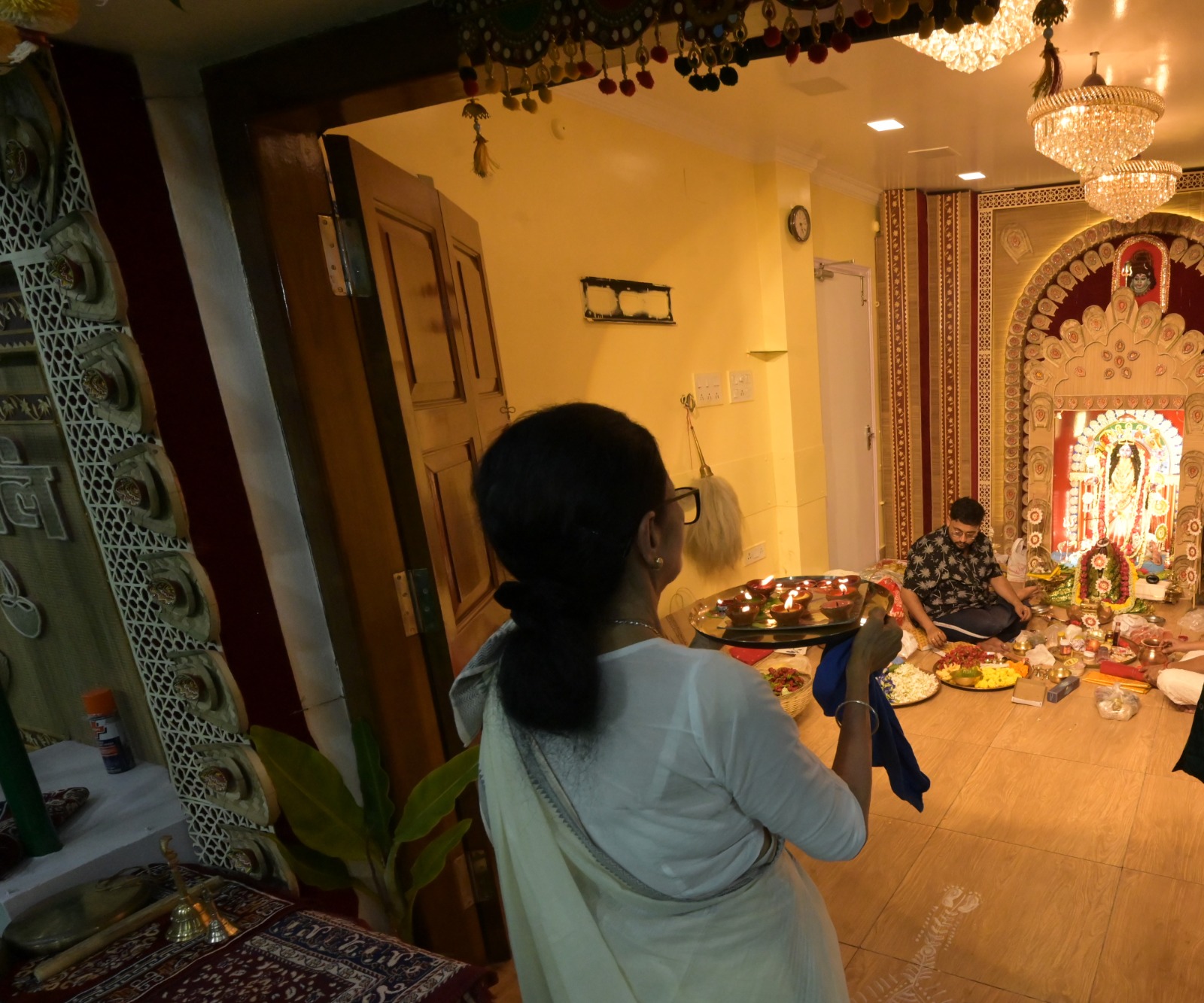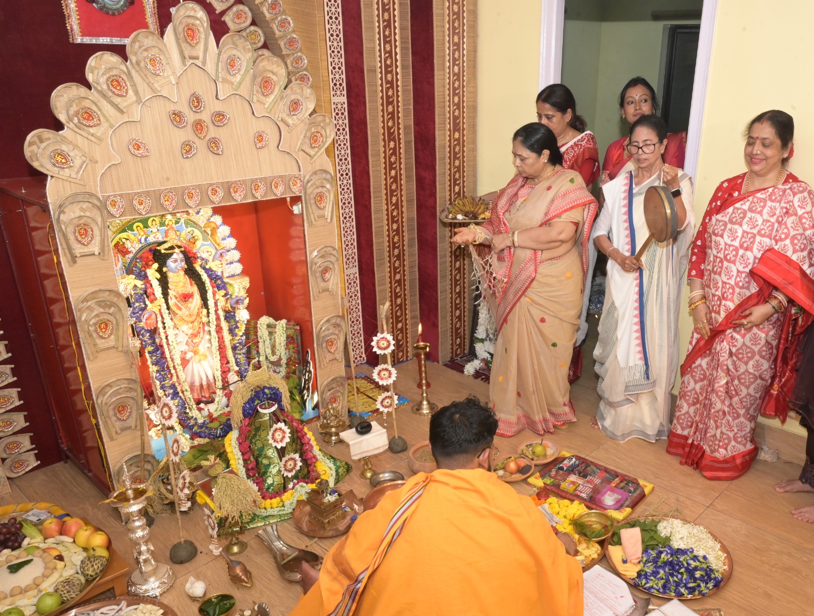 প্রতিবারই বাড়ির কালী আরাধনায় ব্যস্ত থাকেন রাজ্যের প্রশাসনিক প্রধান। নিজে হাতে দেখে নেন পুজোর খুঁটিনাটি। অতিথি আপ্যায়নেও কড়া নজর থাকে তাঁর। পুজো উপলক্ষ্যে মুখ্যমন্ত্রীর বাড়িতে হাজির হন একাধিক বিশেষ অতিথি ও বিশিষ্ট ব্যক্তিরাও। আরতি ও প্রসাদ বিতরণের মধ্য দিয়ে সম্পন্ন হয় মূল পুজো।