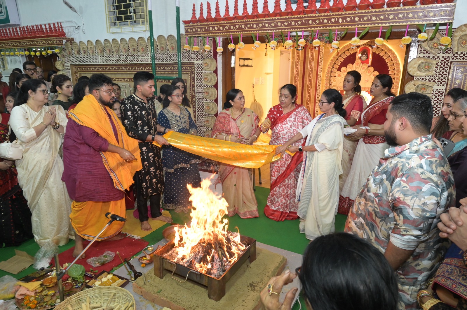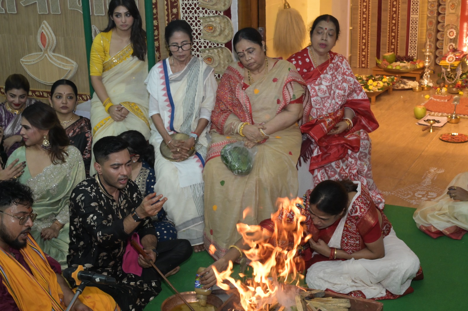 লেক কালীবাড়িতে পুজো দিয়ে কালীঘাটের বাড়িতে সপরিবারে পৌঁছে যান অভিষেক। প্রতিমা নমস্কার করে, কথা বলেন উপস্থিত সকলের সঙ্গে। এরপরে যজ্ঞে বসেন তিনি। সব রকম উপাচার পালন করে হয় যজ্ঞ। বাবার পিছনে সবসময় বসে ছিল কন্যা আজানিয়া। একসময় যজ্ঞের তাপ থেকে তাকে নিজের আঁচল দিয়ে আড়াল করে রাখেন মুখ্যমন্ত্রী।