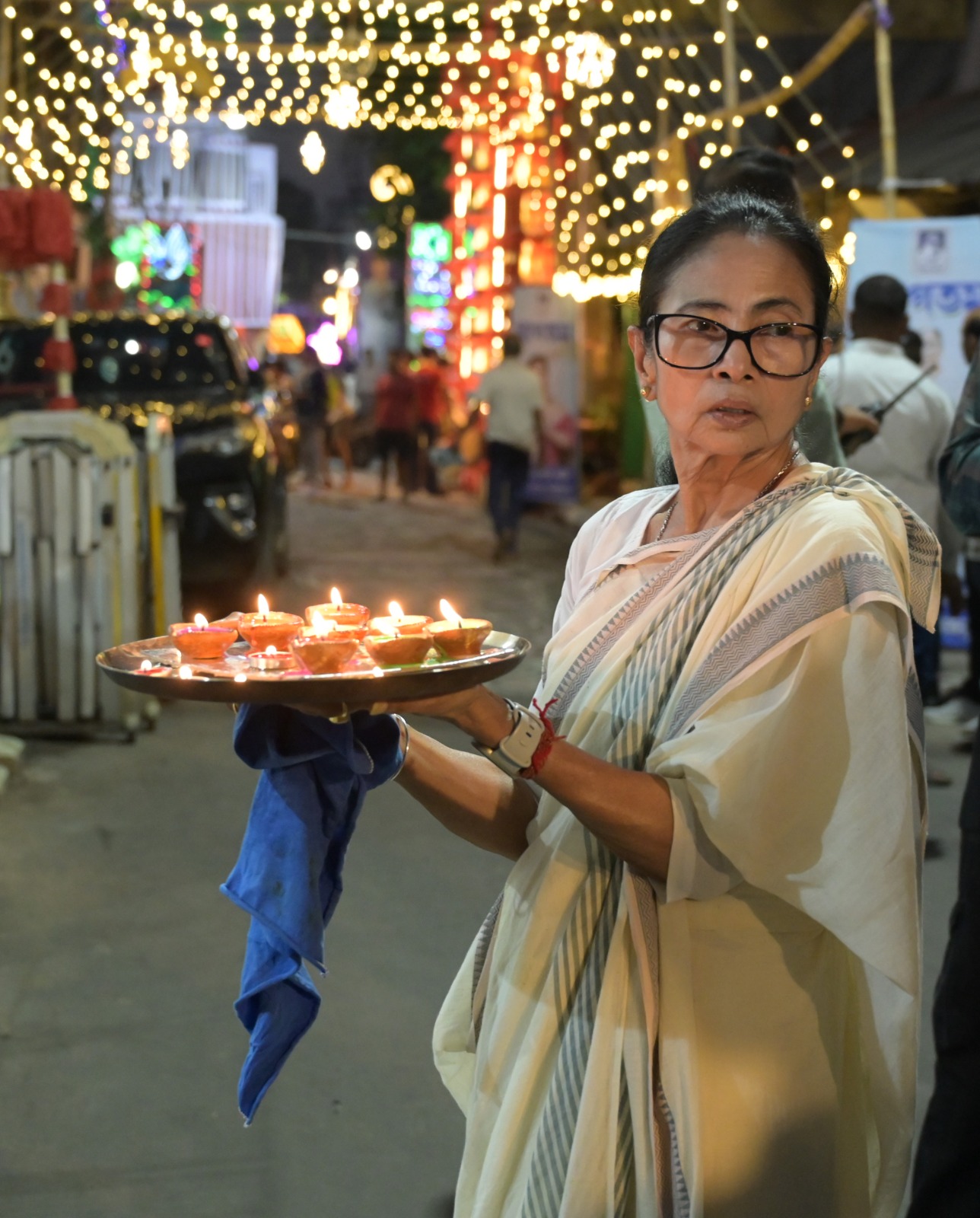 সোমবার সন্ধের আগেই পুজো শুরু হয় কালীঘাটে (Kalighat) মুখ্যমন্ত্রীর বাড়িতে। কালী প্রতিমার সাজ থেকে শুরু করে পুজোর সবকিছুই নিজে তদারকি করেছেন রাজ্যে প্রশাসনিক প্রধান। প্রতিবারের মতো এবারও ভোগ রাঁধেন তিনি।