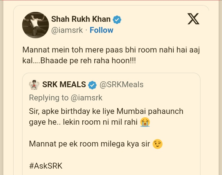 তবে একথা ঠিক যে, চলতি বছর হয়তো জন্মদিনে চিরাচরিত পোজ দিয়ে নিজের বাংলোর বারান্দায় দেখা দিতে পারবেন না শাহরুখ। ৬ তলার মন্নতের কলেবর আরও বাড়ানোর পরিকল্পনা করেছেন খান পরিবার। ইতিমধ্যেই শুরু হয়েছে মন্নত সারাইয়ের কাজ। আর সেজন্যই পালি হিলসের বাংলোয় সপরিবারে থাকছেন শাহরুখ খান। আম্বানিদের এই প্রপার্টিতে আজকাল ভাড়া দিয়েই থাকতে হচ্ছে বলিউড বাদশাকে।