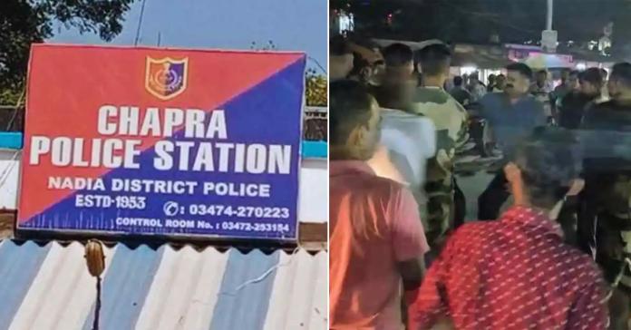 নদিয়ার চাপড়া এলাকায় নিষিদ্ধ কফসিরাপ ‘ফেনসিডিল’ বাজেয়াপ্তকে ঘিরে সংঘর্ষে জড়িয়ে পড়ল বিএসএফ (BSF) এবং রাজ্য পুলিশ (WB Police)। মঙ্গলবার রাত প্রায় ৯টা নাগাদ, ঘটনাটি ঘটেছে কৃষ্ণনগর পুলিশ জেলার চাপড়া থানার সীমানগর এলাকায়। স্থানীয় সূত্রে জানা গেছে, নিষিদ্ধ কফ সিরাপ পাচার হচ্ছে বুঝতে পেরে এলাকার মানুষ পুলিশকে খবর দিলে ঘটনার তলে একইসঙ্গে পুলিশের পাশাপাশি বিএসএফও পৌঁছে যায়। সীমান্তরক্ষী বাহিনী দাবি করে সিরাপগুলি তাদের হেফাজতে দিতে হবে, কারণ তারা আগে থেকেই এই বিষয়ে তথ্য পেয়েছিল। কিন্তু আইন অনুযায়ী কৃষ্ণনগর জেলা পুলিশ (Krishnanagar Police District) হস্তান্তরে রাজি হয়নি। এই নিয়ে গোলমাল শুরু হয় যার রীতিমতো সংঘর্ষের পর্যায়ে পৌঁছে যায়। অন্তত তিনজন পুলিশ কর্মী আহত হয়েছেন বলে খবর। পুলিশ এক বিএসএফ কর্মীকে আটক করে।