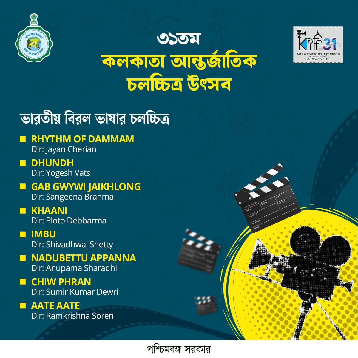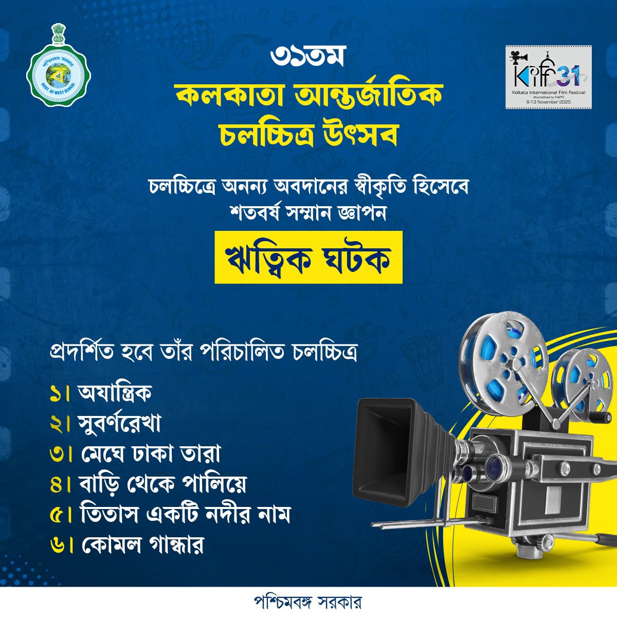 রুপোলি সিনেমা শহরে দিল পা, বছর ঘুরে আবার এল কলকাতা আন্তর্জাতিক চলচ্চিত্র উৎসব (31st Kolkata International Film Festival estival)। চলতি বছর সিনে পার্বণ ৩১তম বর্ষে পদার্পণ করতে চলেছে। বৃহস্পতির বিকেলে কলকাতার ধনধান্যও অডিটোরিয়ামে কিফের (KIFF) আনুষ্ঠানিক উদ্বোধন করবেন বাংলার মুখ্যমন্ত্রী মমতা বন্দ্যোপাধ্যায় (Mamata Banerjee)। মঞ্চ আলোকিত করতে চলেছেন বলিউড-টলিউড এর একাধিক নক্ষত্ররা। তালিকায় শর্মিলা ঠাকুর থেকে আরতি মুখোপাধ্যায়, শত্রুঘ্ন সিনহা থেকে রমেশ সিপ্পি, সুজয় ঘোষ থেকে সৌরভ গঙ্গোপাধ্যায়রা রয়েছেন বলে খবর। তবে গত বছরের মতো এবারও কিং অফ বলিউড শাহরুখ খান (SRK)আসতে পারছেন না বলে জানা গেছে। এদিন উত্তম কুমারকে শ্রদ্ধা জানিয়ে অজয় কর পরিচালিত ‘সপ্তপদী’ প্রদর্শনের মধ্য দিয়ে চলতি বছর চলচ্চিত্র উৎসবের আনুষ্ঠানিক উদ্বোধন হবে। ৭ থেকে ১৩ তারিখ পর্যন্ত কলকাতার নন্দন (Nandan), রবীন্দ্র সদন, শিশির মঞ্চ, ওকাকুরা ভবন, নবীনা সিনেমা, রাধা স্টুডিও, বিনোদিনী থিয়েটার, নজরুল তীর্থ-সহ শহরের বিভিন্ন প্রেক্ষাগৃহে জমে উঠবে সিনেপ্রেমীদের উৎসবের মেজাজ।