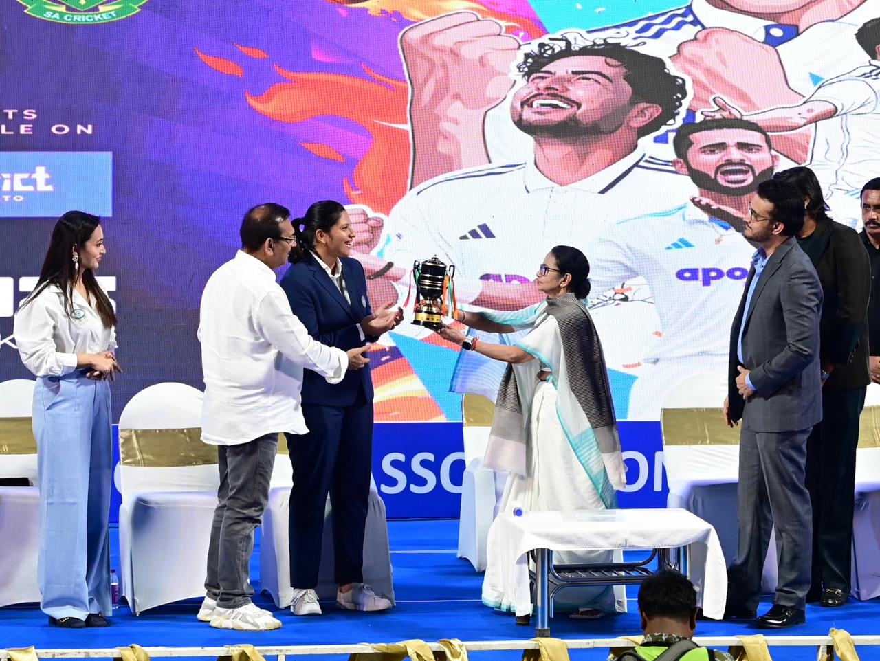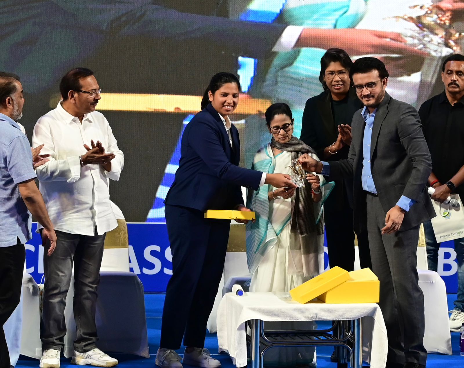 উষ্ণ অভিনন্দন। আমি চাই একনম্বর (ক্যাপ্টেন) হোক রিচা। বিশ্বজয়ী ভারতীয় মহিলা ক্রিকেটদলের সদস্য বাংলার মেয়ে রিচা ঘোষের (Richa Ghosh) সংবর্ধনায় এই মন্তব্য মুখ্যমন্ত্রী মমতা বন্দ্যোপাধ্যায়ের (Mamata Banerjee)। রাজ্যের তরফে সোনার মেয়ে রিচাকে বঙ্গভূষণ সম্মান দেওয়া হয়। রিচার হাতে রাজ্য পুলিশের DSP-র চাকরির নিয়োগপত্র দেন মুখ্যমন্ত্রী। গলায় পরিয়ে দেন সোনার হার। শনিবার, ইডেন গার্ডেনস-এ রিচার সংবর্ধনায় CAB-র তরফে ৩৪ লক্ষ টাকা ও সোনার ব্যাট-বল দেওয়া হয়।