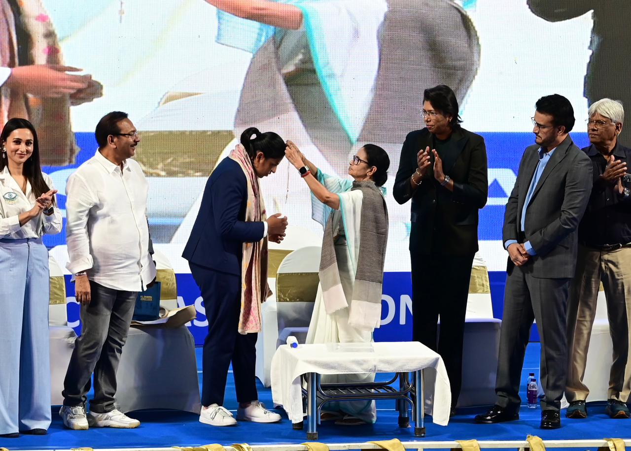 মুখ্যমন্ত্রী বলেন, রিচা বাংলার গর্ব। মমতার কথায়, “রিচা (Richa Ghosh) ভালবাসা দিয়ে বাংলা-বিশ্ব জয় করবে। আরও আরও জয় করবে। মনের শক্তি সব থেকে মানসিক শক্তি। নিজের কাজ নিজেকে করে যেতে হবে। দুর্গমকে জয় করে সেই জায়গায় পৌঁছাতে হবে। লড়তে হবে, করতে হবে, খেলতে হবে, জিততে হবে।“ এর পরেই সৌরভ গঙ্গোপাধ্যায়ের কথার সূত্র ধরে মমতা বলেন, আমিও চাই রিচা একনম্বর (ক্যাপ্টেন) হোক। আর কিছু বলছি না।“