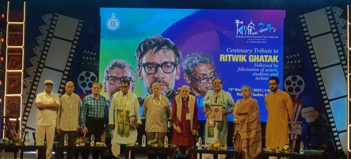চলতি বছরের কলকাতা আন্তর্জাতিক চলচ্চিত্র উৎসবের (31st Kolkata International Film Festival) শেষ দিনে কিংবদন্তি ঋত্বিক ঘটকের সঙ্গে কাজ করেছেন যে শিল্পীরা তাঁদের সম্মানিত করা হয়। উপস্থিত ছিলেন পরিচালক পুত্র ঋতবান ঘটক, যুক্তি তক্কো গপ্পো অভিনেতা সুগত বর্মন, ‘তিতাস একটি নদীর নাম’ সিনেমার প্রযোজক হাবিপুর রহমান খান, অভিনেতা পরমব্রত চট্টোপাধ্যায়-সহ বিশিষ্টরা।