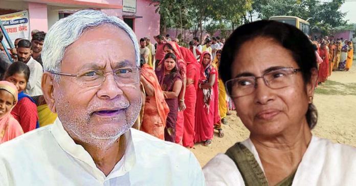 মহিলাদের ভোট টানতে মরিয়া হয়ে একের পর পদক্ষেপ নিতে হয়েছে নীতীশ আর বিজেপিকে। ২০০৫ সালে নীতীশ কুমার যখন প্রথমবার মুখ্যমন্ত্রী পদে নির্বাচিত হন, তখনই স্কুল পড়ুয়া মহিলাদের সাইকেল দিয়েছিলেন। এখন তাঁরা অনেকেই গৃহবধূ। এই ভোটের আগে তাঁরা ব্যাঙ্ক অ্যাকাউন্টে ১০ হাজার টাকা করে পেয়েছেন। তা ছাড়া বিহারে মদ নিষিদ্ধ করে দেওয়া, পুলিশের চাকরিতে মহিলাদের বাধ্যতামূলক সংরক্ষণ, পঞ্চায়েতে ৫০ শতাংশ আসন সংরক্ষণ সবই মহিলা জনভিত্তিকে ধারাবাহিক ভাবে মজবুত করেছে। আর এর সবকটি পদক্ষেপই তারা নিয়েছে মমতা বন্দ্যোপাধ্যায়ের (Mamata Banerjee) দেখানো পথেই।