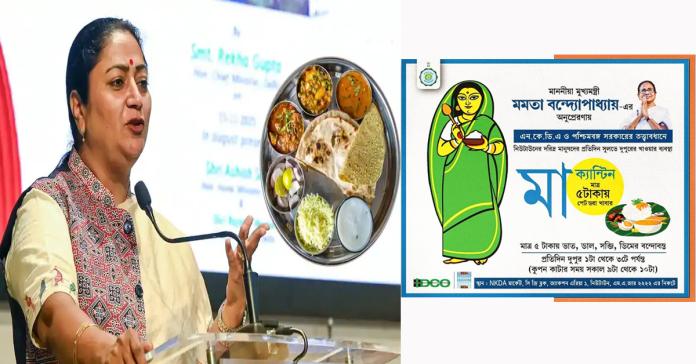 দিল্লির ১০০টি এলাকায় দিনে দু’বার করে ৫০০ জন, অর্থাৎ মোট হাজার মানুষের খাবারের ব্যবস্থা করার পরিকল্পনার কথাও জানিয়েছেন তিনি। এর পরেই তৃণমূল কংগ্রেস অভিযোগ তোলে যে বাংলার ‘মা ক্যান্টিন’-কে নকল করেই বিজেপি এই প্রকল্প শুরু করেছে। দলটির বক্তব্য, কন্যাশ্রী থেকে লক্ষ্মীর ভাণ্ডার— বিভিন্ন সামাজিক প্রকল্পের পর এবার সরাসরি মা ক্যান্টিনের আদল কপি করেছে বিজেপি। তৃণমূলের দাবি, মমতা বন্দ্যোপাধ্যায় কয়েক বছর আগে যে ভাবনা বাস্তবায়িত করেছিলেন, বিজেপি এখন তা অনুসরণ করছে। তাঁদের অভিযোগ, এটি রাজনৈতিক সুবিধা অর্জনের উদ্দেশ্যে করা একটি পদক্ষেপ।