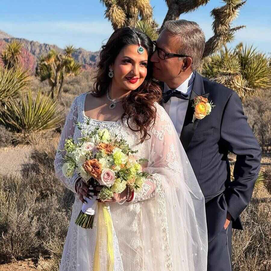 রেড রক ক্যানিয়নকে সাক্ষী রেখে স্বপ্নের লাস ভেগাসে সিনেমার স্টাইলে বিয়ে টলিউড অভিনেত্রী তনুশ্রী চক্রবর্তীর (Tanusree Chakraborty)। ব্যাকগ্রাউন্ডে ভায়োলেন, মিডনাইট ব্লু টাক্সিডোতে নায়িকার পরনে দুধসাদা লেহেঙ্গা, পাশে হাসিমুখে পোজ দিচ্ছেন পেশায় ইঞ্জিনিয়ার টেকনোলজিস্ট বর সুজিত বসু (Sujit Basu)। ছবি ছড়িয়ে পড়েছে সোশ্যাল মিডিয়ায়। একরাশ খুশি ধরা দিল অভিনেত্রীর চোখে মুখে।