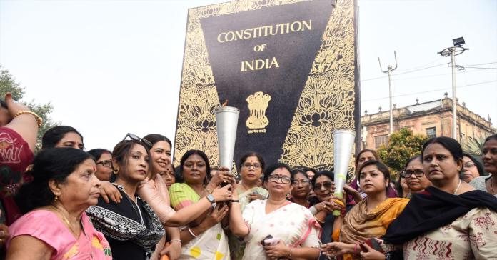 নানা স্লোগানে মুখর মিছিল ধর্মতলার ডোরিনা ক্রসিংয়ে শেষ হয়। সেখানে মশাল প্রজ্জ্বলন করে সংবিধানকে রক্ষার শপথ নেন কর্মীরা। চন্দ্রিমা ভট্টাচার্য বলেন, ১৯৪৬ সালের এই দিনেই গণপরিষদের প্রথম বৈঠক হয়েছিল। সেখানে ১৫ জন মহিলা সদস্যের উপস্থিতি সে সময়ের গণতান্ত্রিক ভাবনারই প্রমাণ। সংবিধান অমোঘভাবে ধর্ম-জাতি-শ্রেণি কোনও ভেদাভেদকে মানে না—এই কথাই বারবার স্মরণ করিয়ে দেন তিনি।