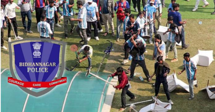 বিশ্বকাপজয়ী লিওনেল মেসির G.O.A.T ইন্ডিয়া ট্যুরে চূড়ান্ত বিশৃঙ্খলার সাক্ষী হয়েছে কলকাতা। যুবভারতী ক্রীড়াঙ্গনে (Yuvabharati Stadium) কার্যত তাণ্ডব চলেছে। দর্শকের ক্ষোভের পাশাপাশি কিছু মানুষ উদ্দেশ্যপ্রণোদিতভাবে ভাঙচুর চালিয়েছেন বলে বিভিন্ন সোশ্যাল মিডিয়ার ফুটেজে ধরা পড়েছে। অনুষ্ঠানের মূল উদ্যোক্তা শতদ্রু দত্তকে (Shatadru Dutta) গ্রেফতার করার পর এবার হিংসায় উস্কানি, সরকারি সম্পত্তি নষ্ট-সহ মোট দশটি ধারায় স্বতঃপ্রণোদিত মামলা রুজু করল বিধাননগর পুলিশ (Bidhannagar Police Commissionerate)। কারা আইনশৃঙ্খলা বিঘ্নিত করল তা খতিয়ে দেখতে তদন্ত শুরু হয়েছে।