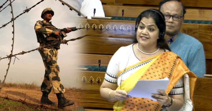সংসদের চলতি অধিবেশনে বাংলাদেশ থেকে অনুপ্রবেশের প্রসঙ্গে বাংলার তৃণমূল সরকারের (TMC Govt)দিকে দায় ঠেলতেই ভারত-পাক সীমান্ত নিয়ে কেন্দ্রের দিকে পাল্টা প্রশ্ন ছুড়লেন বাংলার সাংসদরা। স্বরাষ্ট্রমন্ত্রী অমিত শাহের (Amit Shah)পর এবার বিজেপি সাংসদ জ্যোতির্ময় সিং মাহাতো মঙ্গলবারের অধিবেশনে বলেন ভারত-বাংলাদেশ সীমান্তের একটি বড় অংশ এখনও উন্মুক্ত কারণ পশ্চিমবঙ্গের সরকার নাকি কাঁটাতার বসানোর জন্য জমি দিচ্ছে না। আর তাই এত অনুপ্রবেশ বাড়ছে। এরপরই পাল্টা তোপ দাগে তৃণমূল। বর্ধমান পূর্বের সাংসদ ডা. শর্মিলা সরকার (Dr. Sharmila Sarkar) বলেন, প্রথম কথা ভারত-পাকিস্তান সীমান্তে তো তৃণমূল কংগ্রেসের সরকার নেই, তাহলে ওখানে কেন গোটা এলাকায় কাঁটাতার দেওয়া গেল না? পাশাপাশি বাংলা- বাংলাদেশ সীমান্তের একটা বড় অংশে যে জল আছে তাই সেখানে ফেন্সিং সমস্যার কথা স্পষ্ট করে তুলে ধরেন তিনি।