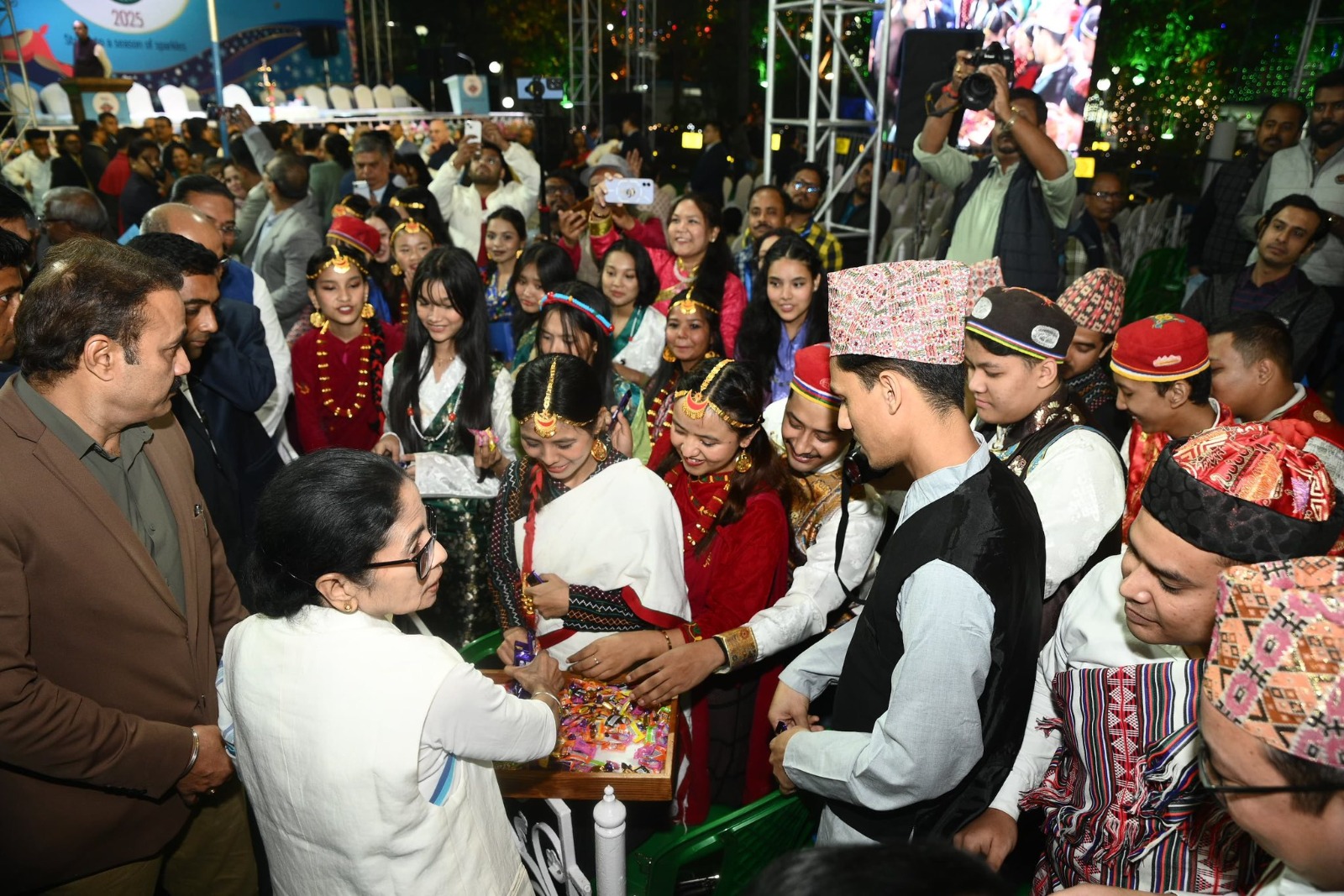 অ্যালেন পার্কের পাশাপাশি এ দিন রাজ্যের আরও ১৪টি জায়গায় একসঙ্গে ক্রিসমাস উৎসবের সূচনা করেন মুখ্যমন্ত্রী। তাঁর কথায়, এখন কোনও উৎসব এলেই চারদিক সেজে ওঠে। বাংলা সব ধর্ম ও বর্ণকে সম্মান করে। জানি না কেন কেউ কেউ এই রাজ্যকে বদনাম করে। মেলা থেকে খেলা—সব কিছুই বাংলার মানুষ ভালবাসে। মেলা-খেলা সারা বিশ্বের মানুষের মধ্যে এক ধরনের কমন ব্রিজ তৈরি করে।