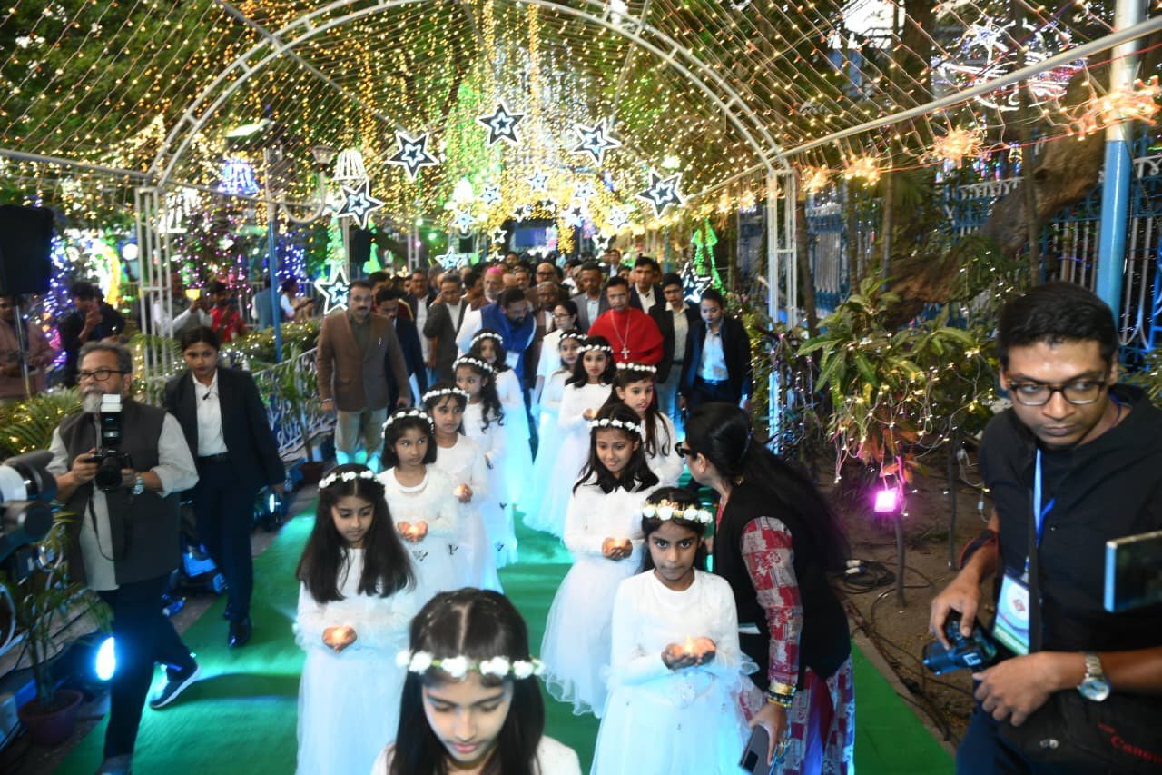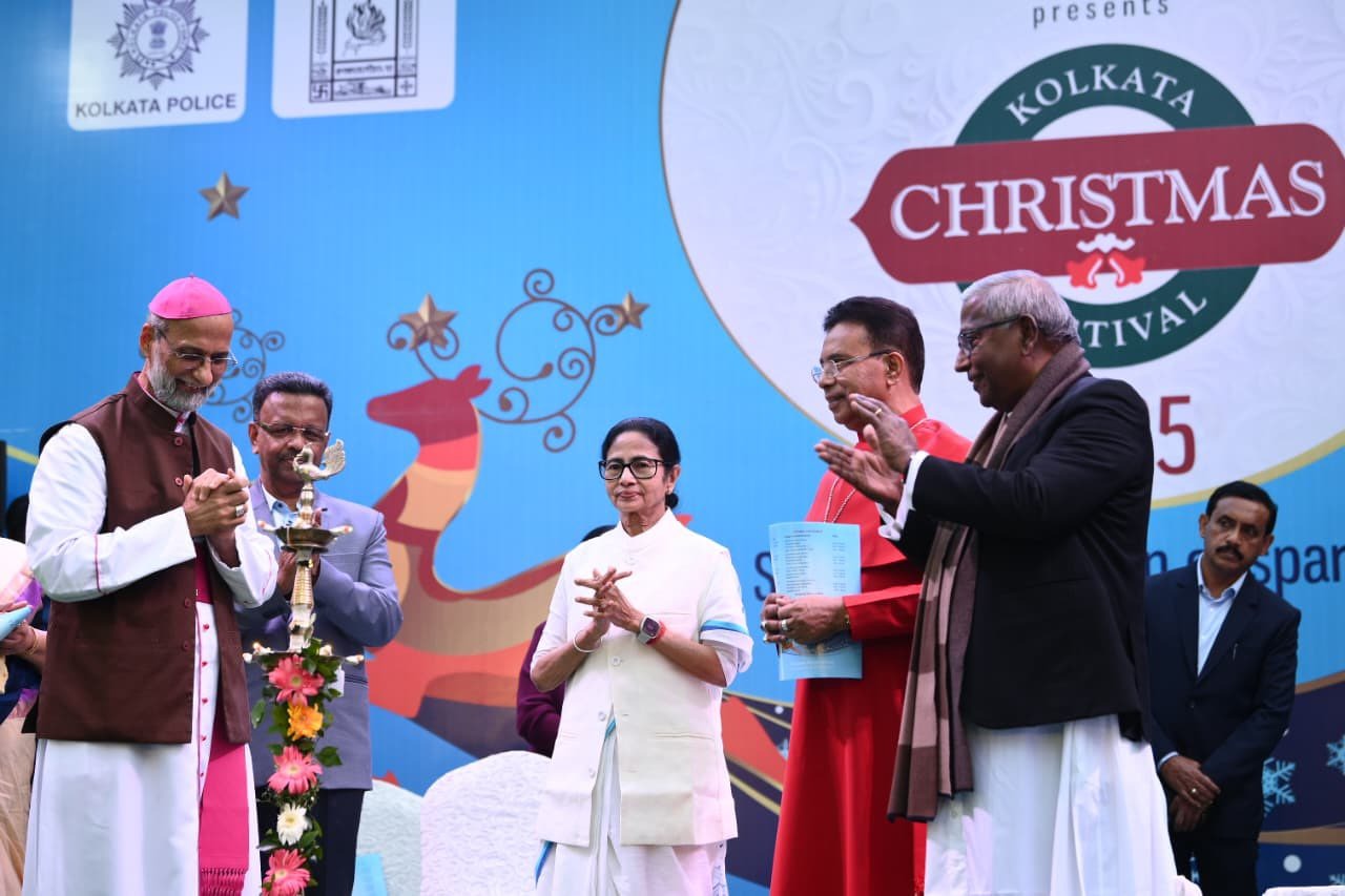 বাংলা সব ধর্মকে সম্মান করে। তবু কেউ কেউ রাজ্যকে বদনাম করার চেষ্টা করেন। বৃহস্পতিবার কলকাতা ক্রিসমাস ফেস্টিভ্যালের উদ্বোধন মঞ্চ থেকে উৎসব ও সম্প্রীতির বার্তা দিলেন মুখ্যমন্ত্রী মমতা বন্দ্যোপাধ্যায় (Mamata Banerjee)। প্রতিবছরের মতো এ বারও পার্ক স্ট্রিট সংলগ্ন অ্যালেন পার্কে কলকাতা ক্রিসমাস ফেস্টিভ্যালের (Kolkata Christmas Festival) উদ্বোধন করেন রাজ্যের প্রশাসনিক প্রধান। ছিলেন মন্ত্রী ফিরহাদ হাকিম, ইন্দ্রনীল সেন, সাংসদ মালা রায়, সুব্রত বক্সী, নগরপাল মনোজ ভার্মা, মুখ্য সচিব মনোজ পন্থ, মোস্ট রেভারেন্ড ড. এলিয়াস ফ্র্যাঙ্ক (আর্চ বিশপ অফ কলকাতা), মোস্ট রেভারেন্ড ড. পরিতোষ ক্যানিং (মডারেটর, চার্জ অফ ইন্ডিয়া অ্যান্ড আর্চ বিশপ অফ কলকাতা)। সঞ্চালকের ভূমিকায় ছিলেন সাংসদ ডেরেক’ও ব্রায়ান।