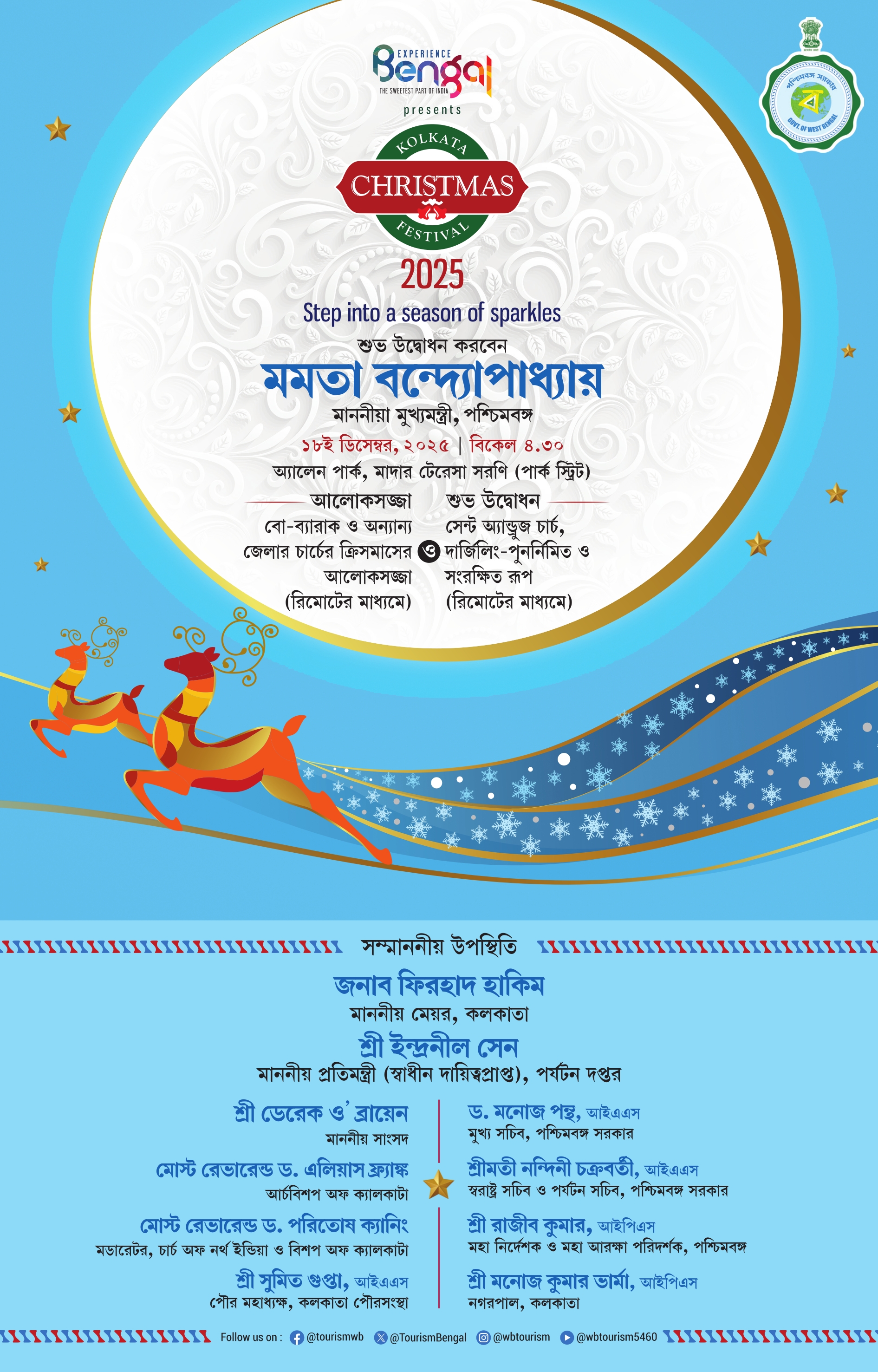 এদিন বিকেল সাড়ে চারটে নাগাদ অ্যালেন পার্ক থেকেই বড়দিন উৎসবে সূচনা করার পাশাপাশি রিমোটের মাধ্যমে বউ ব্যারাক এবং অন্যান্য জেলার চার্চের আলোর উৎসবের উদ্বোধন করবেন রাজ্যের মুখ্যমন্ত্রী। দার্জিলিংয়ের পুনঃনির্মিত চার্চের সংরক্ষিত রূপও এদিন উন্মোচিত হবে সবার সামনে। মমতা বন্দ্যোপাধ্যায়ের সঙ্গে বড়দিন উৎসবের উদ্বোধন উপস্থিত থাকবেন মন্ত্রী ফিরহাদ হাকিম ও ইন্দ্রনীল সেন। মোস্ট রেভারেন্ড ড. এলিয়াস ফ্র্যাঙ্ক (আর্চ বিশপ অফ কলকাতা), মোস্ট রেভারেন্ড ড. পরিতোষ ক্যানিং (মডারেটর, চার্জ অফ ইন্ডিয়া অ্যান্ড আর্চ বিশপ অফ কলকাতা)। গান, নাচ-সহ একাধিক সাংস্কৃতিক অনুষ্ঠানের মাধ্যমে আরও রঙিন হবে এবারের ক্রিসমাস ফেস্টিভ্যাল। বুধবার রাতে আলো জ্বালিয়ে পরীক্ষা করে নেওয়া হয়েছে। অ্যালেন পার্কের পাশাপাশি পুরো পার্ক স্ট্রিট চত্বর জুড়ে থাকছে খাবারের একাধিক স্টল। এ বছর টানা ১৪ দিন ধরে চলবে অনুষ্ঠান। নতুন বছরের প্রথম রবিবার শেষ হবে ক্রিসমাস ফেস্টিভ্যাল। ২৪ তারিখ সন্ধ্যায় এবং ২৫ তারিখ সারাদিন অ্যালেন পার্ক বন্ধ থাকবে বলে জানা গেছে। যুবভারতীর ঘটনার কথা মাথায় রেখে বড়দিনের উৎসবকে ঘিরে এবার শহর জুড়ে পরিকল্পিত প্রস্তুতির ছবি স্পষ্ট।