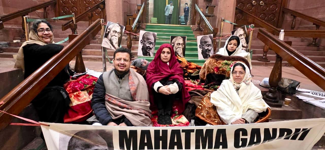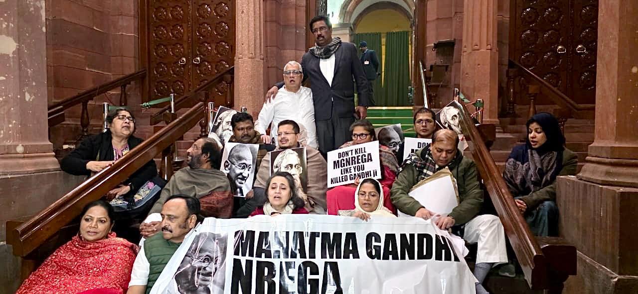 ভোর পাঁচটা নাগাদ ধর্নাস্থল থেকে একটি ভিডিয়ো পোস্ট করেন রাজ্যসভার সাংসদ সাগরিকা ঘোষ। বলেন, ‘সংসদের সিঁড়িতে আমাদের ধর্না কর্মসূচি চলছে। মহাত্মা গান্ধী এবং রবীন্দ্রনাথ ঠাকুরের অপমান আমরা মেনে নেব না।’ ভিডিয়োর শেষে জোর দিয়ে সাগরিকা বলেন, ‘মহাত্মা গান্ধী অমর রহে।’ মোদি সরকার আইন পাস করাতে বুলডোজার কৌশল ব্যাবহার করছে বলেও অভিযোগ করেন সাগরিকা। তাঁর কথায়, ‘বিরোধীদের সঙ্গে কোনও পরামর্শ করা হচ্ছে না। বৈঠকে ডাকা হচ্ছে না। একের পর এক বিল বুলডোজার কায়দার ঠেলে পাস করিয়ে দেওয়া হচ্ছে।’ তাঁর সাফ কথা, ‘মোদি সরকার দ্বিতীয়বার মহাত্মা গান্ধীকে হত্যা করল।’ বিরোধীদের ব্যাপক হট্টগোলের মধ্যেই বৃহস্পতিবার দুপুরে লোকসভায় পাশ হয় ‘বিকশিত ভারত গ্যারান্টি ফর রোজগার অ্যান্ড আজীবিকা মিশন (গ্রামীণ)’ অর্থাৎ ‘জি রাম জি’ বিল।