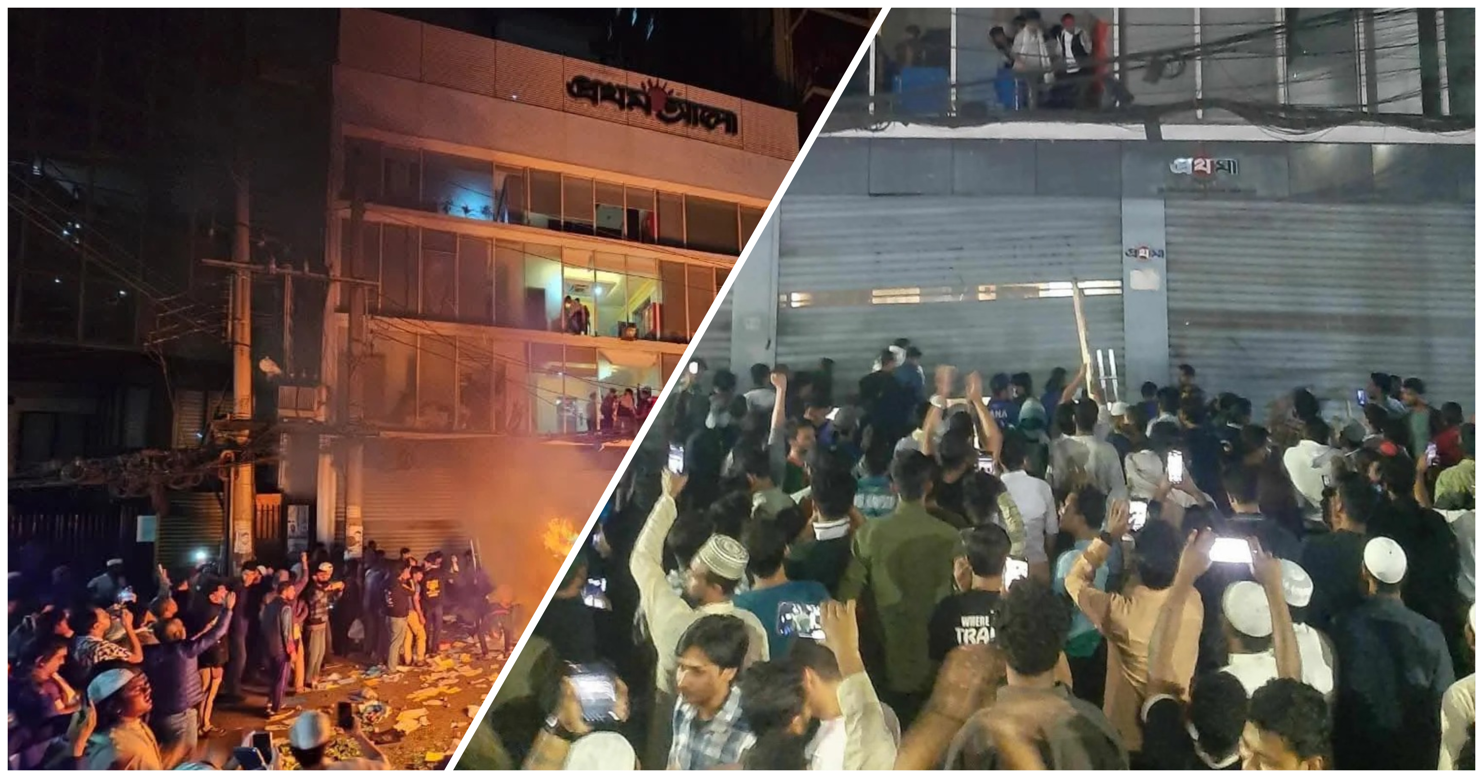 অগ্নিগর্ভ বাংলাদেশের (Bangladesh) উত্তেজনার পরিস্থিতিতে একের পর এক সংবাদমাধ্যমের অফিস ভাঙচুরের খবরের পাশাপাশি ধানমান্ডিতে প্রগতিশীল ধর্মনিরপেক্ষ সাংস্কৃতিক কেন্দ্র ‘ছায়ানট’-এর সাততলা ভবনের প্রতিটি কক্ষে ঢুকে ভাঙচুর চালানোর ঘটনার প্রকাশ্যে আসতেই নিন্দায় সরব পশ্চিমবঙ্গের সংস্কৃতিমনস্ক শিল্পী সাহিত্যিক থেকে সাধারণ মানুষের। সমাজমাধ্যমে ছায়ানটের বিধ্বস্ত কক্ষগুলির ছবি এবং ভিডিয়ো ছড়িয়ে পড়েছে (ভিডিও সত্যতা যাচাই করা হয়নি)। যেভাবে হারমোনিয়াম তবলা আছড়ে ফেলা হচ্ছে তাতে কোথাও গিয়ে স্পষ্ট মৌলবাদের উস্কানি বলে আশঙ্কা করছেন অনেকেই। উত্তেজিত জনতার রোষ থেকে রেহাই পাননি পদ্মাপাড়ের সাংবাদিকেরাও। বৃহস্পতিবার রাতে বাংলাদেশের দুই সংবাদপত্র ‘প্রথম আলো’ এবং ‘দ্য ডেলি স্টার’-এর দফতরে ভাঙচুরের পরেই আগুন ধরিয়ে দেওয়া হয়। লিফটের ভাঙ্গা দরজার সামনে কুপিয়ে কেঁদে চলেছেন চিত্র সাংবাদিক প্রবীর দাস (Prabir Das)। ছবি তাঁর বেঁচে থাকার রসদ। তাই ডেলি স্টারের অফিসের কম্পিউটারেই সব সেভ করে রেখেছিলেন। আগুনের লেলিহান শিখায় চোখের সামনে শুধুই মুঠো মুঠো ছাই। স্বপ্ন পুড়ে শেষ, এখনও বিশ্বাস করতে পারছেন না প্রবীর।