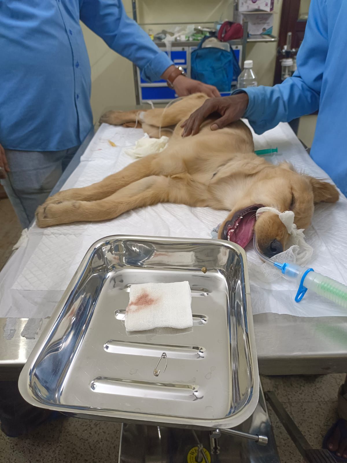 বাটানগরের বাসিন্দা স্বর্ণালি দাসের চার বছরের গোল্ডেন রেট্রিভার (Golden Retriever) গোল্ডি (Goldy) খাবার আগে খেলতে গিয়ে সেফটিপিন গিলে ফেলে। এক্স-রে করে দেখা যায় সেফটিপিনটির মুখ খোলা অবস্থায় পেটের মধ্যে রয়েছে। গোল্ডি চিবিয়ে ফেলার পরে সেটি বেঁকেও যায়। এই পরিস্থিতিতে দুশ্চিন্তায় পড়ে দাস পরিবার। কারণ চঞ্চল পোষ্যের অপারেশন হলে, তাকে শান্ত রাখা যেত না। সেলাই ছিড়ে যাওয়ার সম্ভাবনা থাকত।
