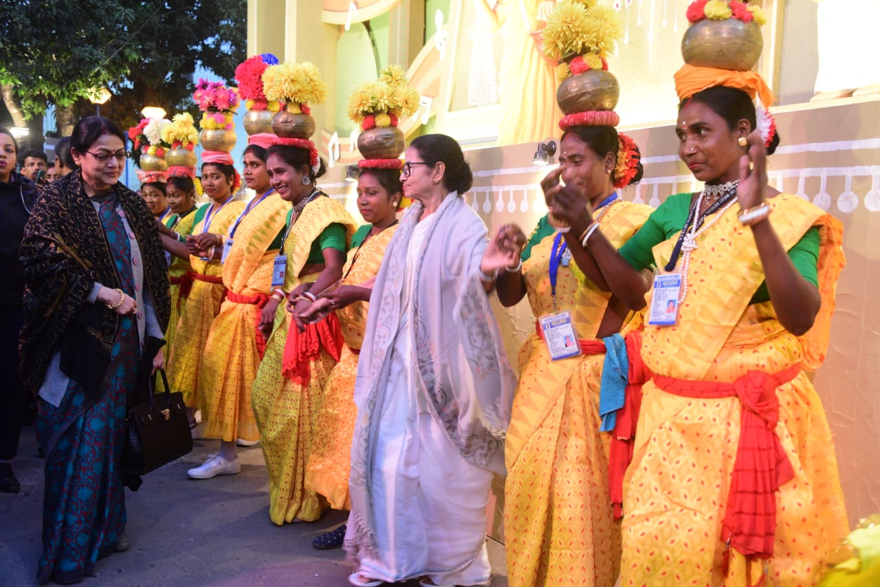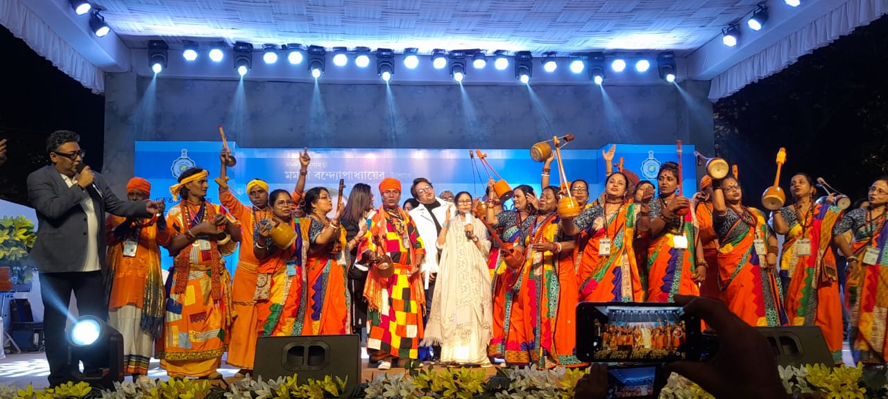 এদিন সেখানে উপস্থিত হন মুখ্যমন্ত্রী। সবার অনুরোধে মাইক তুলে নেন তিনি। ‘প্রাণ ভরিয়ে‘, ‘সে যে আমার জন্মভূমি‘- দুটি গানে গলা মেলান মমতা। এর পরে আদিবাসী লোকশিল্পীদের উৎসাহ দিতে নাচের ছন্দে পা মেলান রাজ্যের প্রশাসনিক প্রধান।