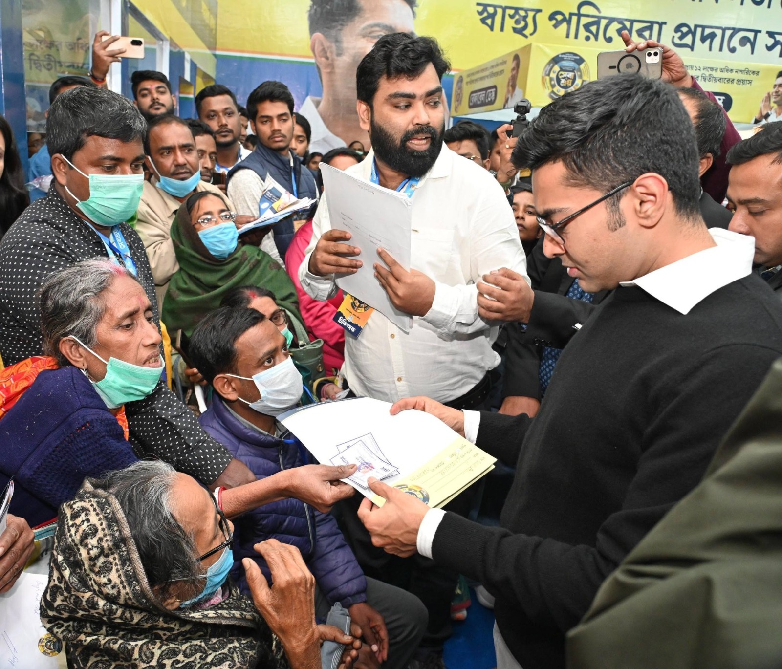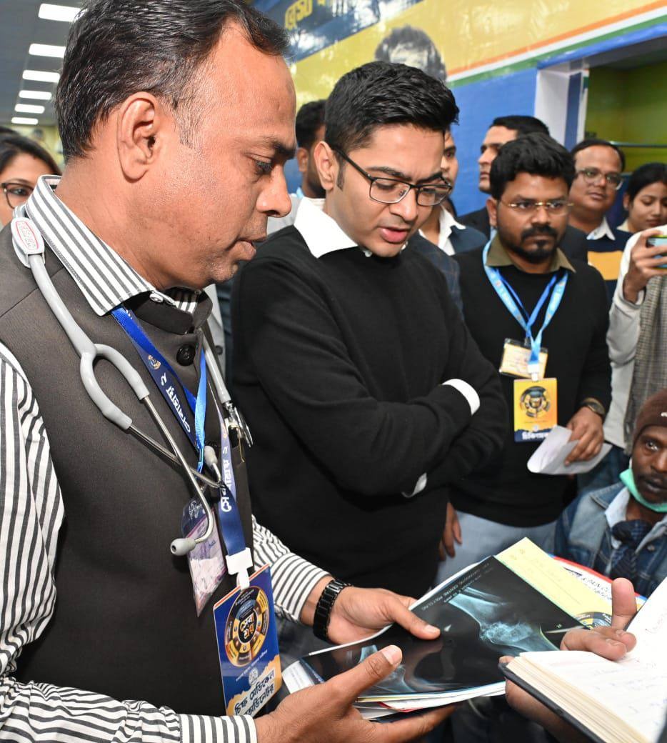 শিবিরে উপস্থিত রোগী ও তাঁদের আত্মীয়দের সঙ্গে কথা বলেন অভিষেক। চিকিৎসকদের থেকেও রোগীদের সম্পর্কে তথ্য নেন। সঠিক চিকিৎসার নির্দেশ দেন।