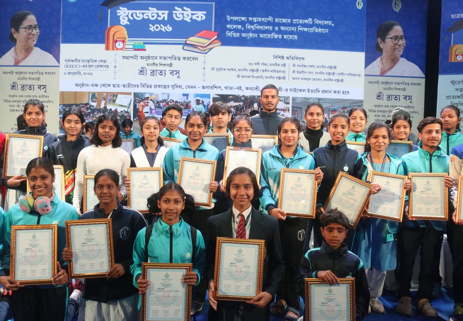 অনুষ্ঠানে শিক্ষামন্ত্রী ব্রাত্য বসু (Bratya Basu) জানান, স্টুডেন্ট উইকের সমাপ্তি অনুষ্ঠানে শুধুমাত্র খেলাধুলায় সাফল্য পাওয়া ছাত্রছাত্রীদের পুরস্কৃত করাই নয়, ‘তরুণের স্বপ্ন’ প্রকল্পের আওতায় একাদশ শ্রেণির পড়ুয়াদের ডিজিটাল শিক্ষার সুবিধা বাড়াতে ট্যাব বা মোবাইল কেনার অর্থ সরাসরি তাঁদের অ্যাকাউন্টে পাঠানো হচ্ছে। এই প্রকল্পে মোট ৮ লক্ষ ৫০ হাজার পড়ুয়াকে অন্তর্ভুক্ত করা হয়েছে। সরকারের মোট ব্যয় হয়েছে প্রায় ৮৫০ কোটি টাকা। এর মধ্যে প্রায় ৪০ হাজার পড়ুয়া কারিগরি শিক্ষার সঙ্গে যুক্ত। শিক্ষামন্ত্রী আরও জানান, জাতীয় স্তরের স্কুল ক্রীড়া প্রতিযোগিতায় এ বছর ৪১টি বিভাগের মধ্যে বাংলার পড়ুয়ারা ২৯টি বিভাগে অংশ নিয়েছিল। প্রতিযোগিতায় রাজ্যের পড়ুয়ারা উল্লেখযোগ্য সাফল্য অর্জন করেছে। মোট ২৫ জন পড়ুয়া স্বর্ণপদক জিতেছে এবং সামগ্রিকভাবে রাজ্যের ঝুলিতে এসেছে ২৭৭টি পদক। পদকপ্রাপ্ত পড়ুয়াদের স্বর্ণ, রৌপ্য ও ব্রোঞ্জ পদকের ভিত্তিতে যথাক্রমে ১৫ হাজার, ১০ হাজার এবং ৭ হাজার টাকা করে পুরস্কার মূল্য দেওয়া হয়েছে। স্টুডেন্ট উইকের শেষ দিনের এই ঘোষণায় একদিকে যেমন ডিজিটাল শিক্ষার পরিসর আরও বিস্তৃত হল, তেমনই জাতীয় স্তরে ক্রীড়া সাফল্যের জন্য রাজ্যের পড়ুয়াদের প্রাপ্তিতে মিলল সরকারি স্বীকৃতি।