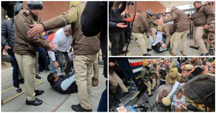 শুক্রবার সকাল থেকে কর্তব্য পথের এক নম্বর গেট অর্থাৎ স্বরাষ্ট্র মন্ত্রকের সামনে বিক্ষোভে বসেন আট তৃণমূল সাংসদ। অমিত শাহ ও এনফোর্সমেন্ট ডিরেক্টারিদের বিরুদ্ধে স্লোগান দেওয়ার পাশাপাশি হাতে পোস্টার নিয়ে ধর্না দেন তাঁরা। বার্তা, ইডি এবং বিজেপি একদিকে, অন্যদিকে বাংলার জনতা। তারপরই দিল্লি পুলিশের এই নির্লজ্জ আচরণ।