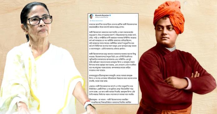 স্বামী বিবেকানন্দের ১৬৪তম জন্ম জয়ন্তীতে তাঁকে শ্রদ্ধা জানিয়ে মুখ্যমন্ত্রী লেখেন, ভারতের স্বাদেশিক আধ্যাত্মিক চেতনার প্রতীক স্বামী বিবেকানন্দের জন্মজয়ন্তীতে তাঁকে জানাই আমার সশ্রদ্ধ প্রণাম। স্বামী বিবেকানন্দ আমাদের স্বদেশভক্তি ও সকল সমাজকর্মের অনুপ্রেরণা। তাঁর দেশপ্রেমের আদর্শ, দরিদ্রনারায়ণের সেবার বার্তা, ঐক্য, শান্তি ও সম্প্রীতির বাণী আমাকে সবসময় উদ্দীপিত করেছে। সর্ব-ধর্ম-সমন্বয়ের যে পথ স্বামীজি আমাদের দেখিয়েছিলেন, তাই আমাদের সবার পাথেয়। স্বামীজির আদর্শে অনুপ্রাণিত হয়ে ধর্ম-বর্ণ-নির্বিশেষে বাংলার সকল মানুষ একে অপরকে শ্রদ্ধা করুক ও ভালোবাসুক—এটাই আমাদের একমাত্র প্রার্থনা।