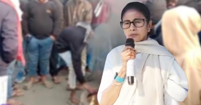 ঝাড়খণ্ডে পরিযায়ী শ্রমিক খুনে উত্তপ্ত বেলডাঙা। এদিন সকাল থেকে পথ, ট্রেন অবরোধে উত্তপ্ত গোটা এলাকা। এবিষয়ে উত্তরবঙ্গে যাওয়ার আগে বিমানবন্দরে সাংবাদিকদের মুখোমুখি হয়ে মুখ্যমন্ত্রী বলেন, “বেলডাঙায় কাদের প্ররোচনা আছে আপনারা জানেন। আমি বলব শান্তিবজায় রাখুন। জুম্মাবারে ওঁদের জমায়েত হয়। চিরকালই হয়। আমাদের দুর্গাপুজো, শিবরাত্রিতেও জমায়েত হয়। আমি কি বারণ করতে পারি? ওঁদের ক্ষোভ সঙ্গত। আমি বলব, আমরা সর্বধর্ম সমন্বয়ে বিশ্বাসী। শান্তি বজায় রাখুন।” বিজেপি অশান্তি করতে চাইছে বলেও অভিযোগ করেন তিনি। এর পরেই বিজেপিশাসিত রাজ্যে বাংলার পরিযায়ী শ্রমিকদের উপর অত্যাচারের তীব্র প্রতিবাদ করে মমতা বলেন, “ডাবল ইঞ্জিন সরকার প্রতিদিন পরিযায়ী শ্রমিকদের উপর অত্যাচার করছে। একদিকে নাম কাটছে, অন্যদিকে আমাদের লোকেদের পিটিয়ে হত্যা করা হচ্ছে। এর থেকে নক্কারজনক আর কী হতে পারে? ডবল ইঞ্জিন সরকারের রাজ্যে অত্যাচার করা হচ্ছে। আমরা বিষয়টি দেখছি। কোর্টে মামলা হয়েছে। আমি ওই সব পরিবারের পাশে আছি।”। বিজেপির দিকে আঙুল তুলে তিনি বলেন, “এই অত্যাচার যারা করছে, তারাই আবার আশা করছে বাংলার মানুষ তাদের ভোট দেবে!”