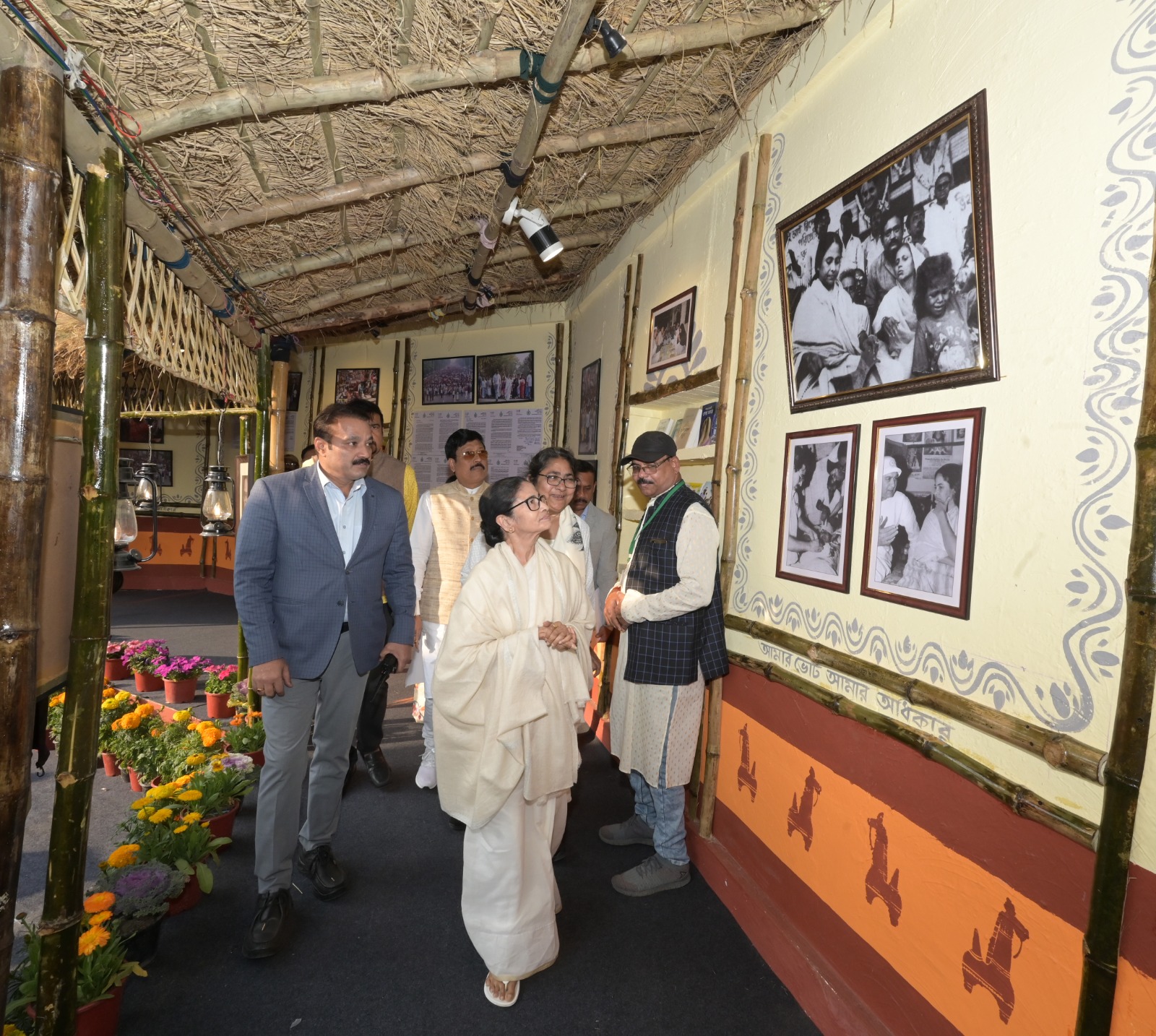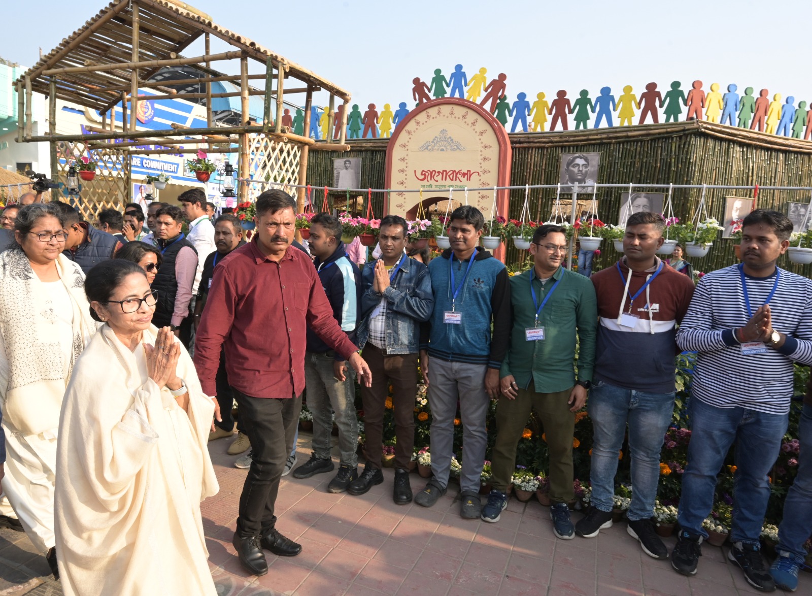 এবার ‘জাগো বাংলা‘-র স্টল (Jago Bangla Stall) তৈরি হয়েছে সাম্প্রতিক তিন ইস্যু নিয়ে। নানা ভাষা, নানা মত, নানা পরিধান বৈচিত্রের মধ্যে ঐক্য। কেন্দ্রের সরকার যে ঐক্যকে ভেঙে চুরমার করতে চাইছে। হাতে হাত ধরে দেশের মানুষ। সম্প্রীতিতে প্রতিশ্রুতিবদ্ধ। দ্বিতীয় বৈশিষ্ট্য হল, আক্রান্ত বাংলার মনীষা এবং মনীষী। বিজেপির (BJP) হাতে বাংলা, বাংলাভাষী, বাংলার মনীষীরা আক্রান্ত। তাদের শ্রদ্ধা জানিয়ে দেওয়াল জুড়ে শুধুই তাদের ছবি। তৃতীয় বৈশিষ্ট হল এসআইআর। নিবিড় তথ্য সংগ্রহের নামে ভোটার বাতিলের চক্রান্ত কমিশন ও কেন্দ্রের। তার বিরুদ্ধে প্রতিবাদ হচ্ছে বাংলা জুড়ে। সেই সব মিছিল ছবি, কোলাজ জাগো বাংলার স্টল জুড়ে।