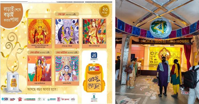 সরস্বতী পুজোয় থিমের ছোঁয়া এখন নতুন নয়। তবে সেই থিমের পুজোকে এবার প্রতিযোগিতার মধ্যে দিয়ে স্বীকৃতির সময়। এবছরের সরস্বতী পুজোর থিমের লড়াইয়ে প্রথম টাকি বয়েজ স্কুল (GSMS Taki Boys School)। জেআইএস এবং সংবাদ প্রতিদিনের যৌথ উদ্যোগে আয়োজিত এই প্রতিযোগিতায় সরস্বতী পুজোর (Saraswati puja) সৃজনশীলতায় প্রথম স্থান ছিনিয়ে নিয়েছে এই স্কুল। পুরস্কার হিসেবে ঝুলিতে ২৫ হাজার টাকা।