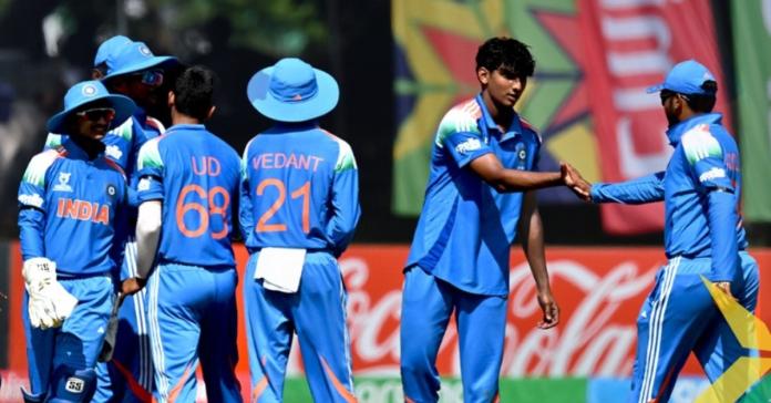 পাকিস্তানকে ৫৮ রানে হারিয়ে আইসিসি যুব বিশ্বকাপের সেমিফাইনালে ভারত(India)। ম্যাচ শেষ হওয়ার জন্য অপেক্ষা করতে হল না। ৩৩.৩ ওভারেই সেমিফাইনালের স্থান নিশ্চিত করল ভারত। গ্রুপ ২ থেকে নেট রান রেটের বিচারে সেমিফাইনালে টিকিট নিশ্চিত করে ফেলল ভারতের যুবরা।